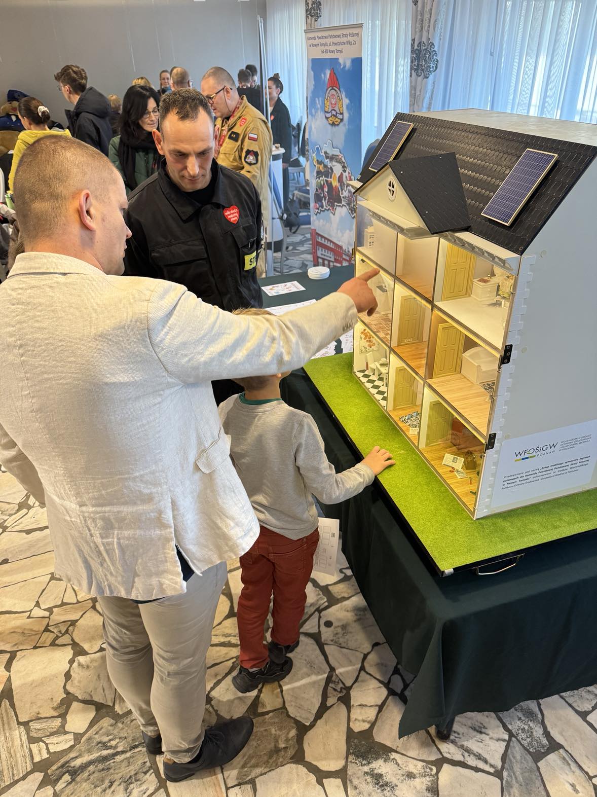 Największym zainteresowaniem nowotomyślan cieszył się mobilny symulator zagrożeń pożarowych – budynek jednorodzinny, który w bardzo realistyczny sposób przedstawiał niebezpieczne zdarzenia, które mogą zaistnieć w każdym gospodarstwie domowym.