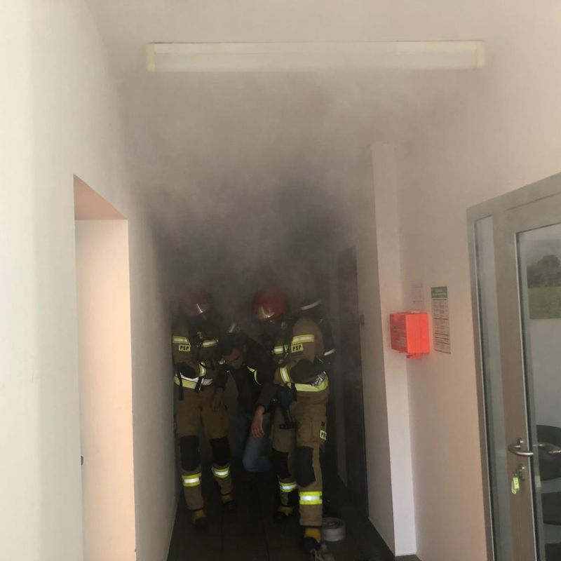Każda ze zmian miała okazję zapoznać się z procesami technologicznymi oraz zagrożeniami mogącymi wystąpić w poszczególnych działach firmy, jak również możliwościami taktycznymi podczas prowadzenia akcji ratowniczych na terenie zakładu. Zwieńczeniem było przeprowadzenie ćwiczeń mających na celu sprawdzenie zachowania się pracowników firmy na wypadek powstania pożaru w budynku biurowca. Przeprowadzono ewakuację kilkudziesięciu pracowników biurowych oraz jednej z hal produkcyjnych. W trakcie prowadzonych ćwiczeń zasymulowano zaginięcie jednego z pracowników, którego należało odszukać, ewakuować i udzielić kwalifikowanej pierwszej pomocy. Przyjęty scenariusz ćwiczeń został zrealizowany w pełnym zakresie, a zauważone uwagi i wnioski omówiono podczas podsumowania z pracownikami oraz osobami funkcyjnymi firmy.