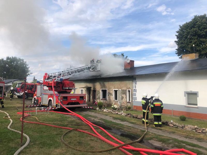 Do groźnego pożaru doszło w poniedziałek 27 lipca 2020 roku, o godzinie 15:45 do Stanowiska Kierowania Komendanta Powiatowego PSP w Nowym Tomyślu wpłynęło zgłoszenie o pożarze budynku mieszkalnego w miejscowości Jastrzębniki gm. Opalenica. Już pierwsze zastępy straży pożarnej z daleka widziały kłęby gęstego dymu unoszące się nad wsią, dlatego dyżurny Stanowiska Kierowania podjął decyzję o zadysponowaniu większej ilości sił i środków z terenu powiatu nowotomyskiego oraz Grodziska Wlkp. Mieszkańcy budynku ewakuowali się przed przybyciem straży pożarnej. Po przybyciu na miejsce pierwszych jednostek, pożarem objęty był lokal mieszkalny na parterze oraz poddasze. Strażacy natychmiast podjęli akcję gaśniczą oraz przystąpili do udzielenia kwalifikowanej pierwszej pomocy uczestnikom zdarzenia. Na miejsce zadysponowany został zespół ratownictwa medycznego oraz śmigłowiec Lotniczego Pogotowia Ratunkowego. Po przeprowadzonych badaniach jedna osoba trafiła do szpitala w Poznaniu oraz druga do szpitala w Nowym Tomyślu. Do późnych godzin wieczornych trwały prace rozbiórkowe części spalonego dachu i poddasza oraz zabezpieczenia spalonej konstrukcji. Przedstawiciel Urzędu Gminy Opalenica dostarczył na miejsce pożaru plandeki, celem zabezpieczenia obiektu przed opadami atmosferycznymi, a Zastępca Burmistrza Opalenicy zorganizował kwatery zastępcze. Jednak jak się później okazało pogorzelcy znaleźli schronienie u członków swoich rodzin.