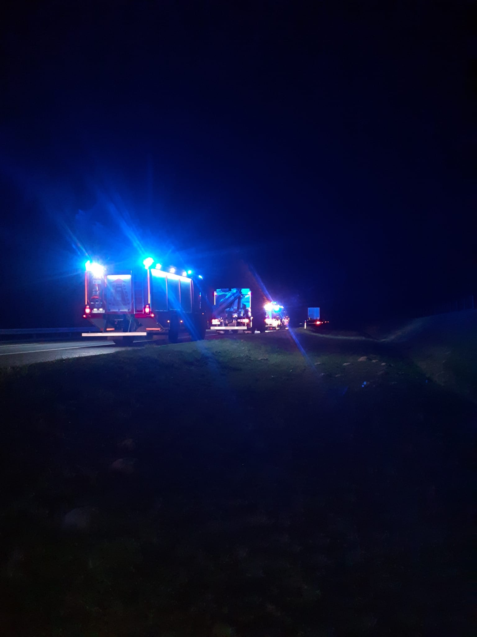 Po przybyciu na miejsce zdarzenia zastano samochód ciężarowy stojący na pasie awaryjnym oraz samochód osobowy znajdujący się na skarpie pasa zieleni. Dwóch podróżujących samochodem osobowym oraz jeden podróżujący samochodem ciężarowym opuścili pojazdy przed przybyciem straży pożarnej. Na miejscu obecny był już zespół ratownictwa medycznego oraz policja.