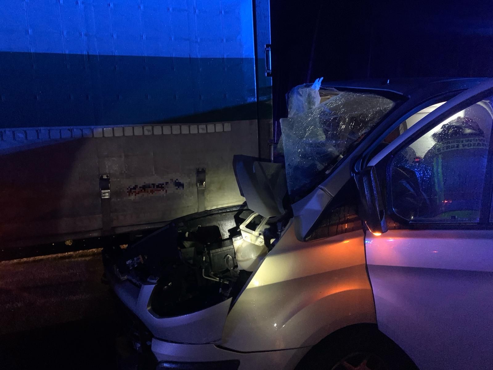 Bus uderzył w tył naczepy samochodu ciężarowego