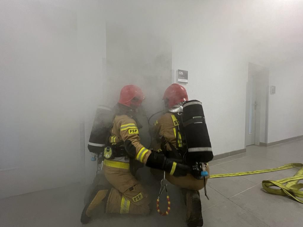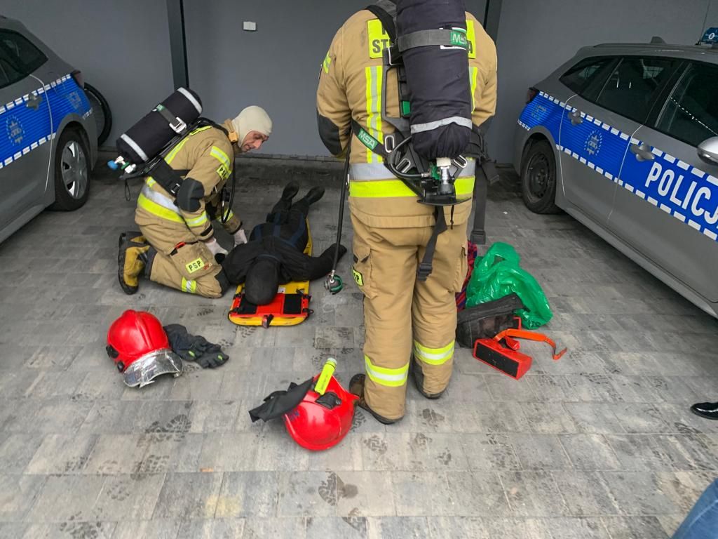 Strażacy weszli do środka budynku, odszukali pomieszczenie i osobę poszkodowaną, którą ewakuowali na zewnątrz, a następnie udzieli kwalifikowanej pierwszej pomocy. Następnie przystąpiono do podsumowania ćwiczeń, które są bardzo istotne, aby wypracować schematy postępowania w przypadku zaistnienia prawdziwego zagrożenia.