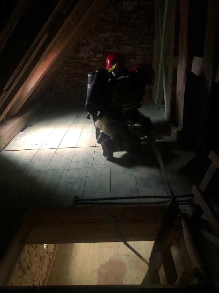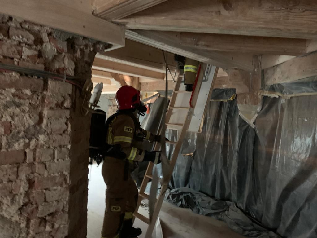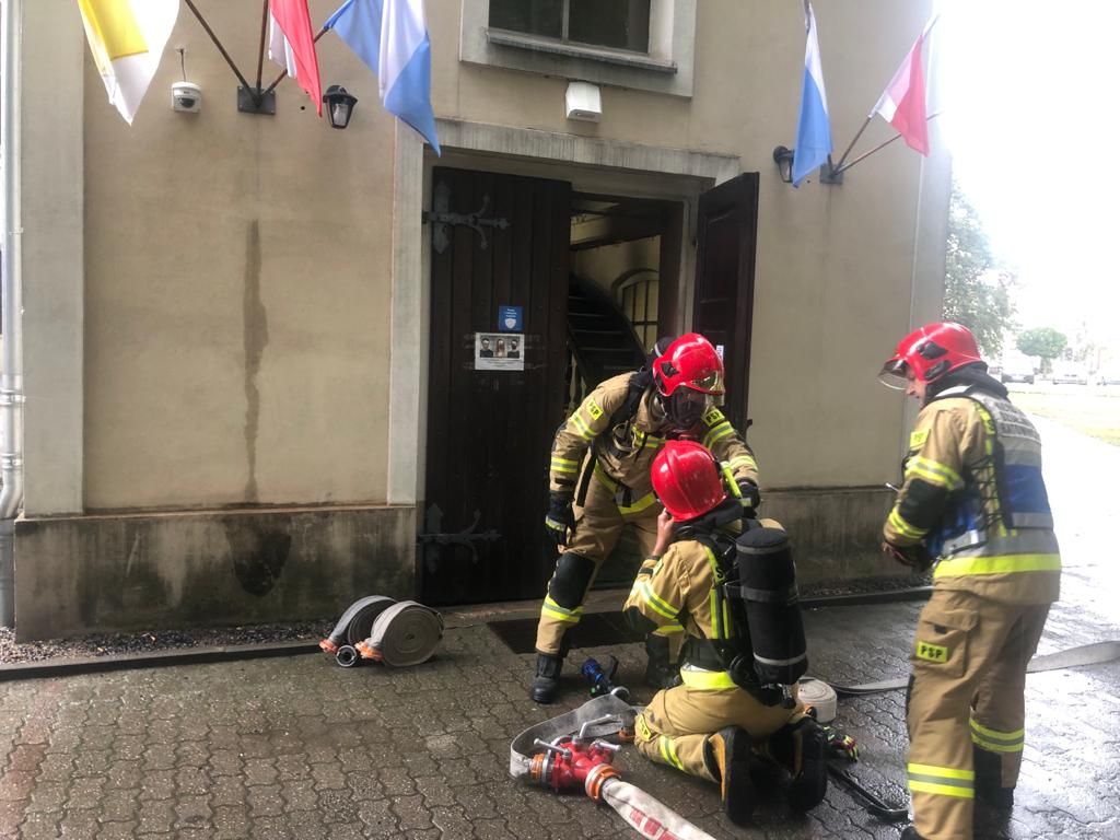 Założeniem do ćwiczeń był pożar w części strychowej kościoła powstały w wyniku prowadzenia pracy remontowych.