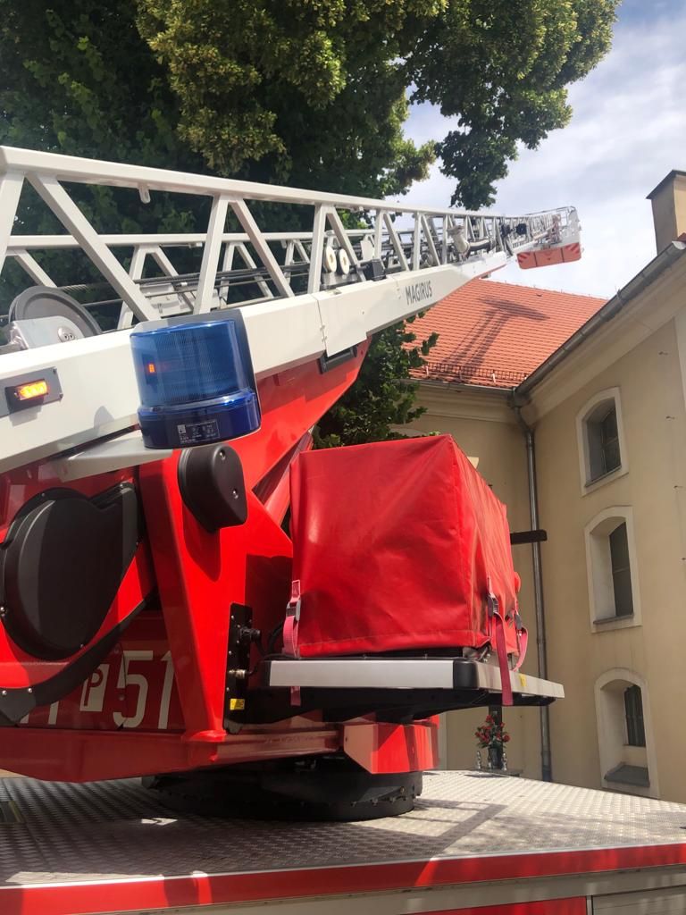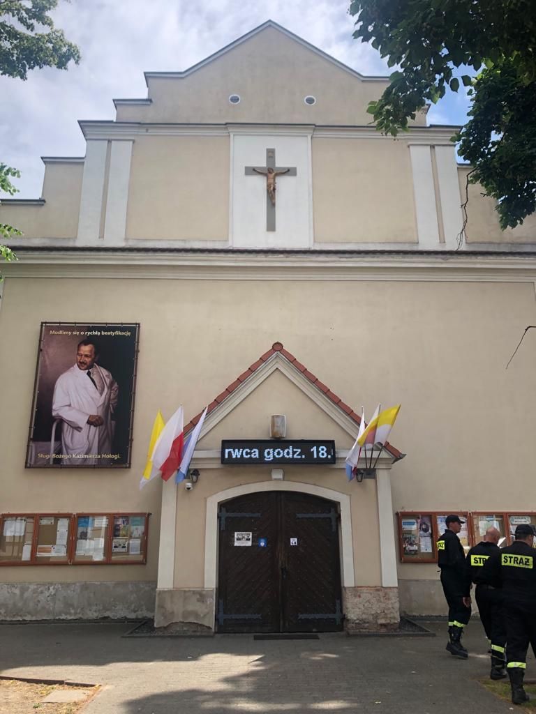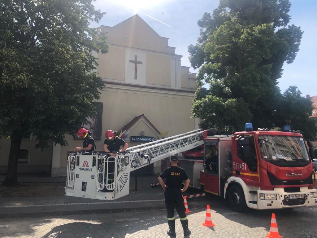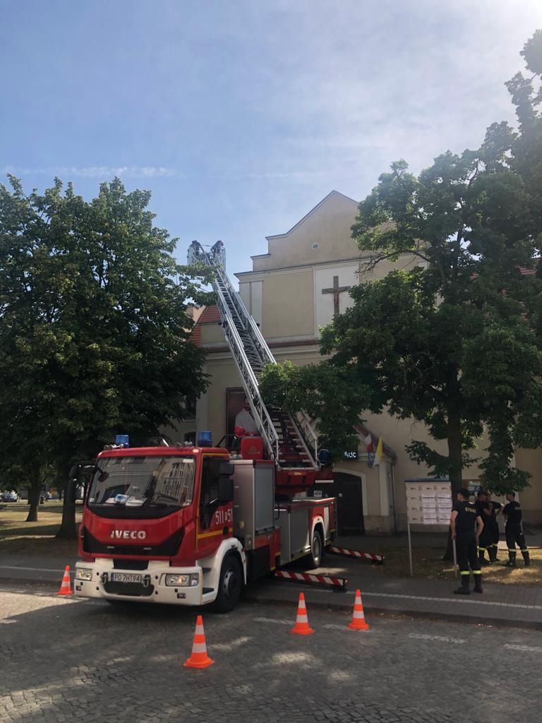 Dzięki uprzejmości Proboszcza Parafii ks. Tomasza Sobolewskiego strażacy mogli zajrzeć w każdy zakamarek kościoła oraz sprawdzić możliwości rozstawienia i pole pracy drabiny mechanicznej SD 30.