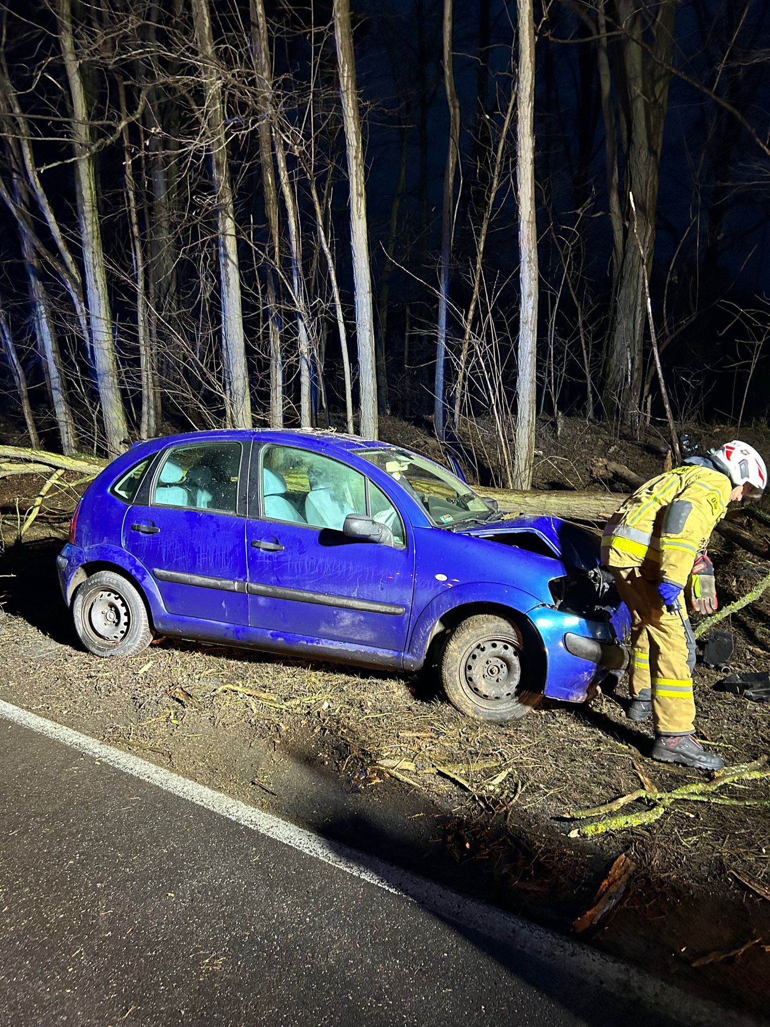 Po przybyciu zastępów na miejsce zdarzenia zastano samochód osobowy , który uderzył w drzewo. Pojazdem podróżowała jedna osoba, która opuściła go o własnych siłach, przed przybyciem służb ratowniczych.