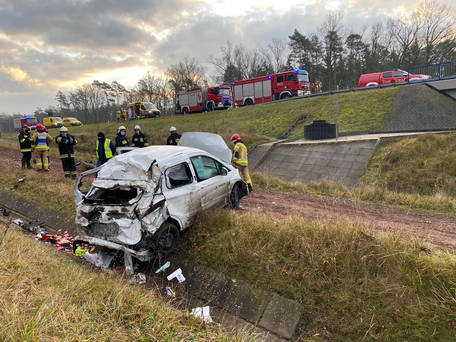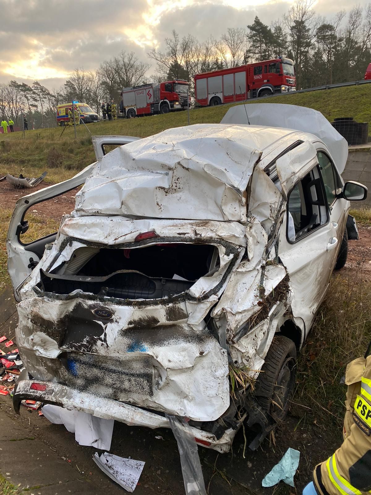 W dniu 18 grudnia 2020 o godzinie 8:21 do Stanowiska Kierowania Komendanta Powiatowego PSP w Nowym Tomyślu wpłynęło zgłoszenie o dachowaniu samochodu osobowego na 110 km autostrady A2 w kierunku Świecka. Po przybyciu pierwszych zastępów na miejsce zdarzenia okazało się, że pojazd znajduje się poza ogrodzeniem, na drodze serwisowej równoległej do autostrady, a podróżujący Fordem Tourneo Currier mieszkaniec powiatu poznańskiego opuścił samochód przed przyjazdem straży pożarnej. Działania strażaków polegały na zabezpieczeniu miejsca zdarzenia, odłączeniu akumulatora w rozbitym pojeździe, udzieleniu KPP osobie poszkodowanej (wsparcie psychiczne). Po przybyciu Zespołu Ratownictwa Medycznego na miejsce zdarzenia i przebadaniu osoby poszkodowanej lekarz podjął decyzję o przewiezieniu do Szpitala w Nowym Tomyślu.