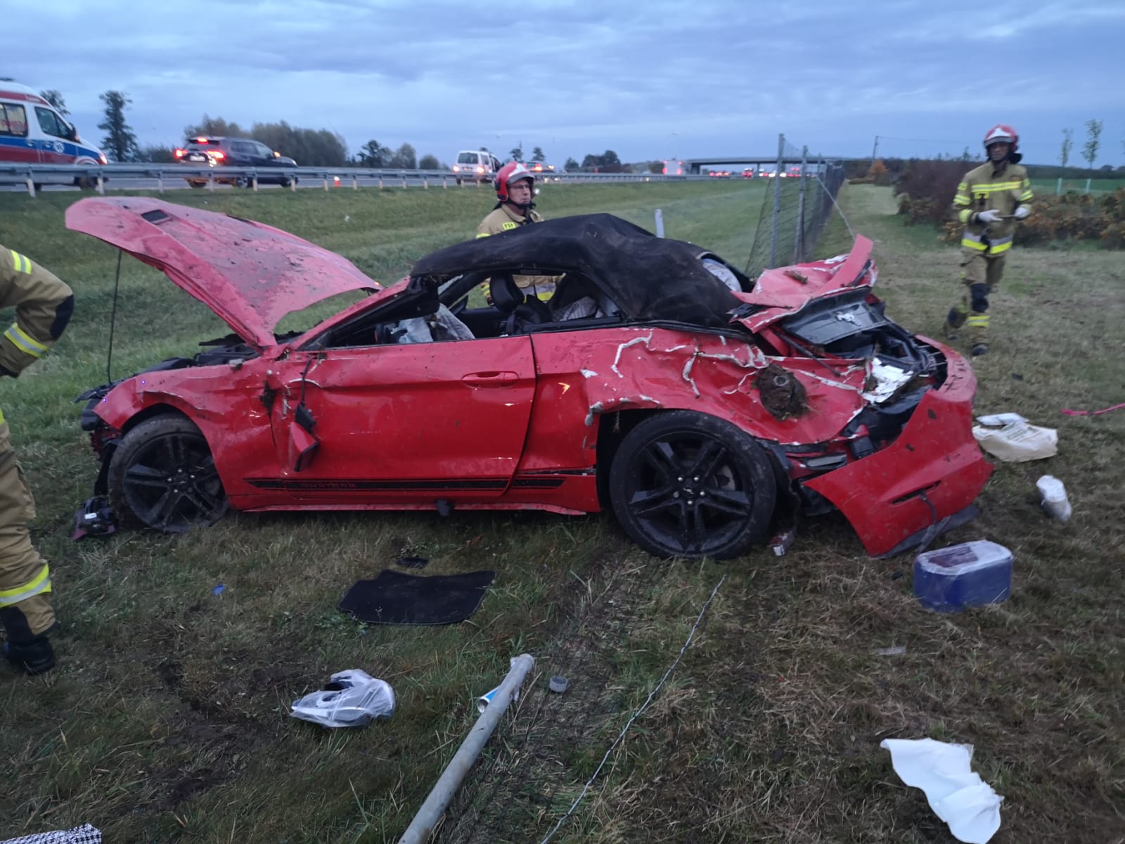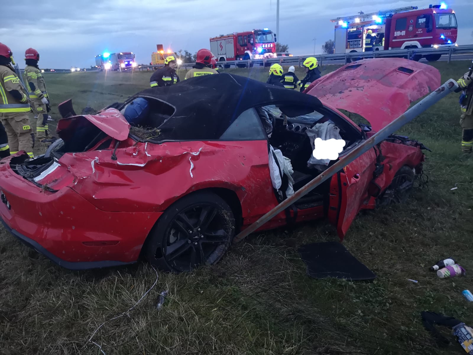 Po przybyciu pierwszych zastępów na miejsce zdarzenia zastano samochód osobowy Ford Mustang GT Cabrio, który w wyniku dachowania znajdował się poza autostradą. Osoby poszkodowane opuściły samodzielnie pojazd przed przybyciem zastępów straży pożarnej.