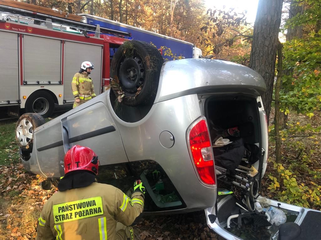 W dniu 28 października 2021 roku o godz. 15:22 do Stanowiska Kierowania Komendanta Powiatowego PSP w Nowym Tomyślu wpłynęło zgłoszenie o dachowaniu samochodu osobowego na 47 km drogi wojewódzkiej nr 307. Dyżurny SKKP do działań zadysponował dwa zastępy ratownictwa technicznego i samochód rozpoznawczo ratowniczy z JRG Nowy Tomyśl oraz jednostkę OSP Bukowiec. Po przybyciu pierwszego zastępu straży pożarnej na miejsce zdarzenia zastano samochód osobowy leżący na dachu w przydrożnym rowie, a kierująca opuścił pojazd przed przyjazdem strażaków. Działania polegały na zabezpieczeniu miejsca zdarzenia, udzieleniu kwalifikowanej pierwszej pomocy poszkodowanej kobiecie (kontrola ABC, wsparcie psychiczne, opatrunek głowy, stabilizacja odcinka szyjnego kręgosłupa), kierowaniu ruchem, postawieniu pojazdu na koła i odłączeniu akumulatora w pojeździe. Przybyły na miejsce Zespół Ratownictwa Medycznego po przeprowadzonym badaniu zdecydował o przetransportowaniu kobiety do szpitala w Nowym Tomyślu.
