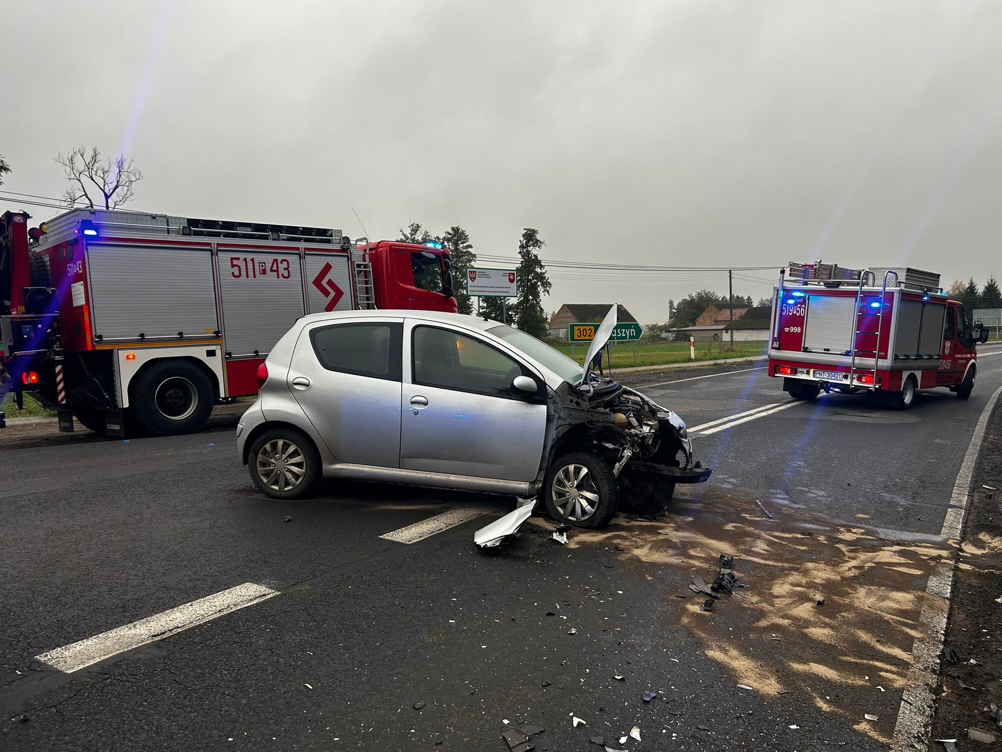 W dniu 27 października 2023 o godzinie 15:21 do Stanowiska Kierowania Komendanta Powiatowego Państwowej Straży Pożarnej w Nowym Tomyślu wpłynęło zgłoszenie o wypadku 2 samochodów osobowych na drodze wojewódzkiej 302 w okolicach skrzyżowania na Chrośnicę.