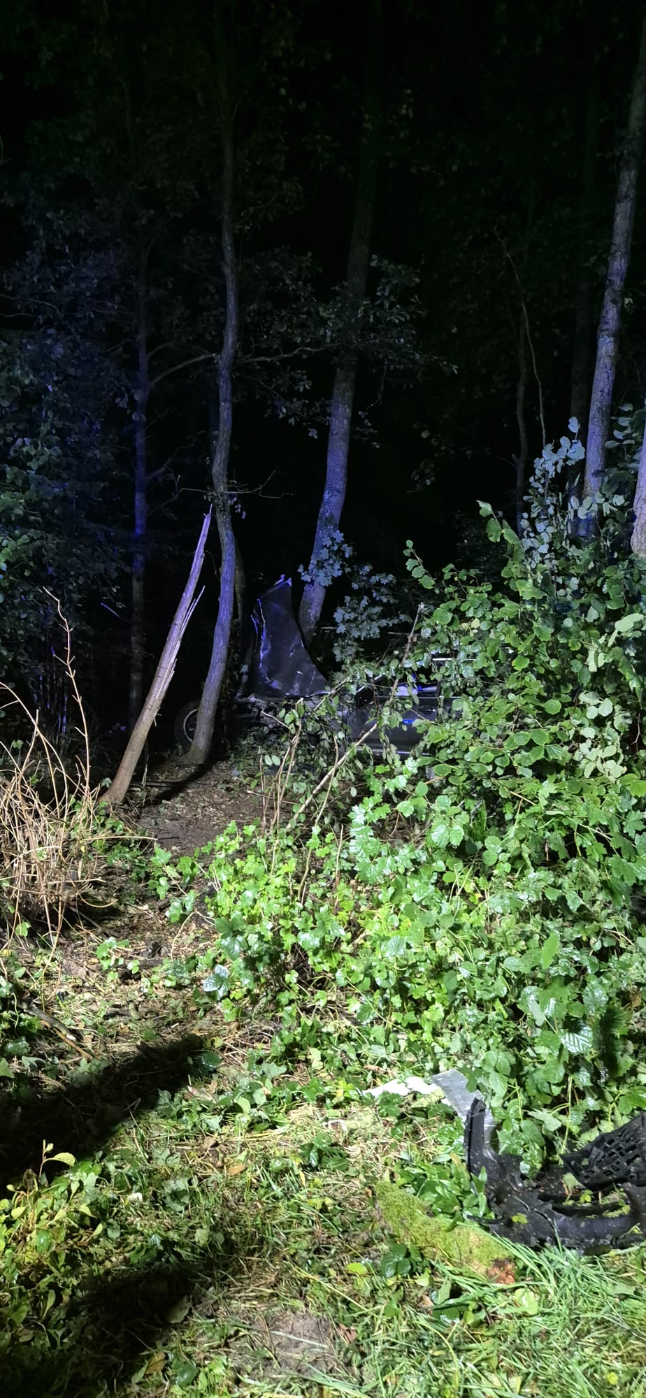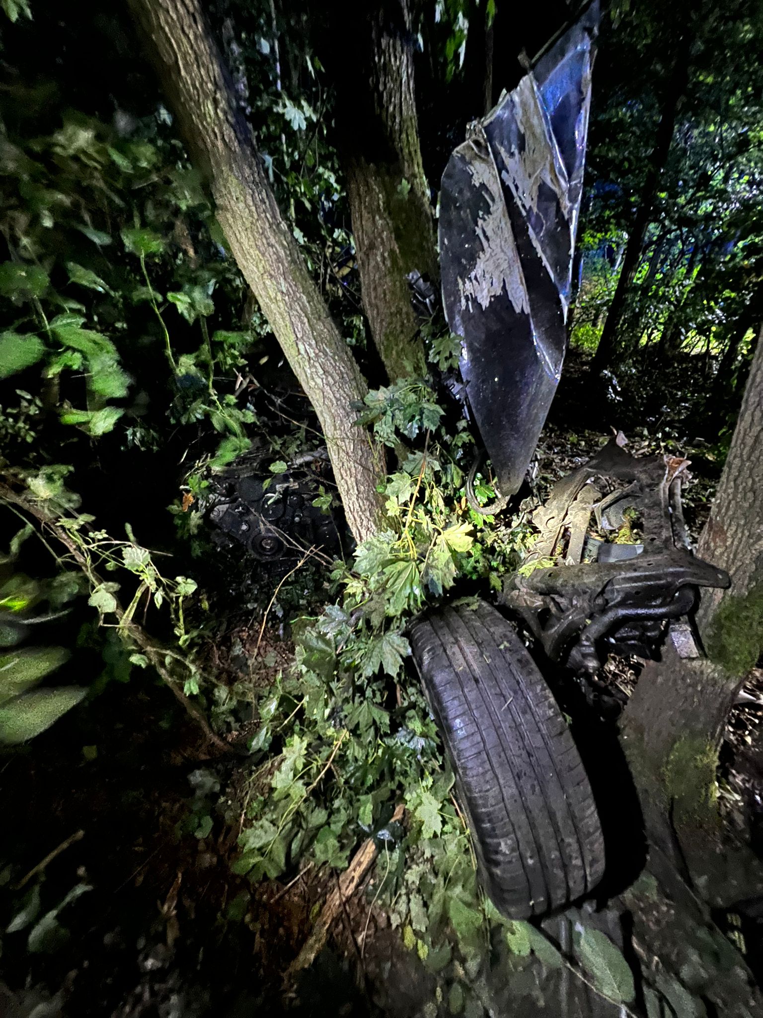 Po przybyciu zastępów straży pożarnej na miejsce zdarzenia zastano samochód osobowy marki VW Touareg w przydrożnym lesie po uderzeniu w drzewo. Samochodem podróżowały 3 osoby (obywatele Ukrainy), którzy opuścili pojazd o własnych siłach przed przybyciem służb. W wyniku zdarzenia poszkodowany został jeden mężczyzna.