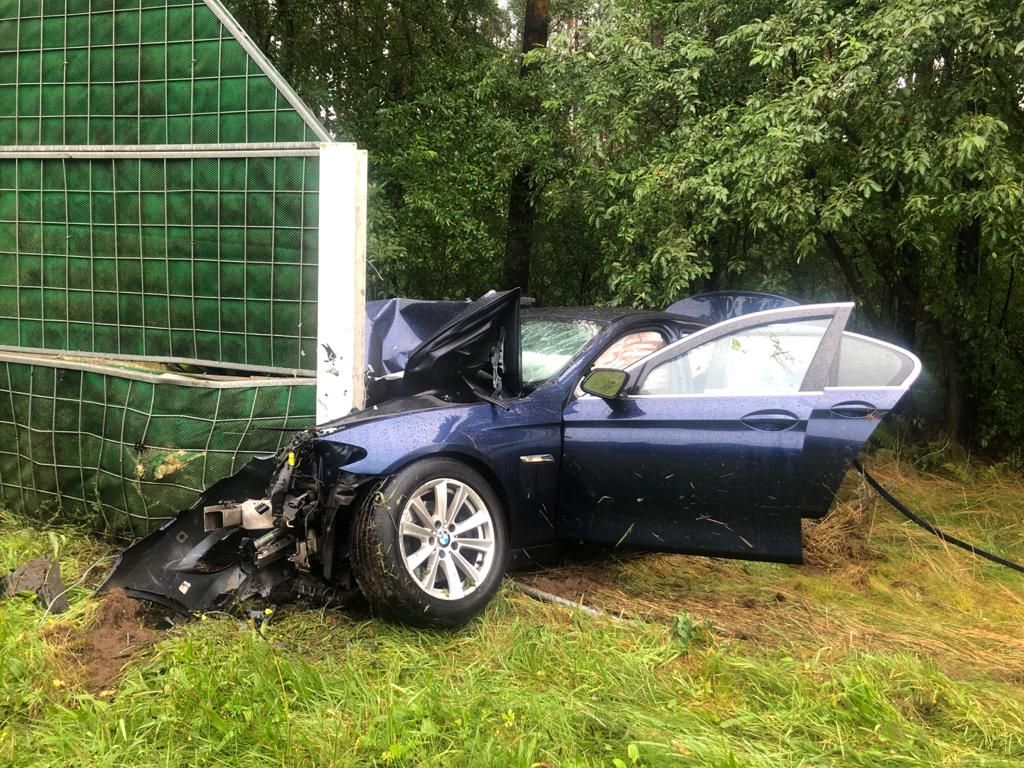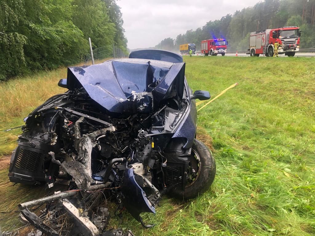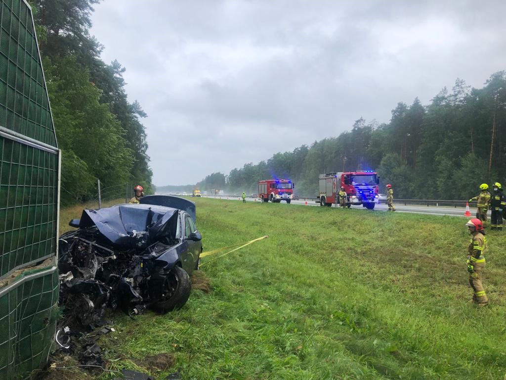 W dniu 23 sierpnia 2021 roku o godz. 12:56 do Stanowiska Kierowania Komendanta Powiatowego PSP w Nowym Tomyślu wpłynęło zgłoszenie o wypadku samochodu osobowego, który uderzył w ekran dźwiękochłonny na 111km autostrady A2 w kierunku na Warszawę. Dyżurny SKKP do działań zadysponował dwa zastępy ratownictwa technicznego i samochód rozpoznawczo-ratowniczy z JRG Nowy Tomyśl oraz jednostkę OSP Bolewice. Po przybyciu zastępów straży pożarnych na miejsce zdarzenia zastano samochód osobowy na pasie zieleni, wbity w ścianę bariery dźwiękochłonnej. Dwie osoby podróżujące pojazdem znajdowały się w radiowozie Policji. Działania strażaków polegały na zabezpieczeniu miejsca zdarzenia, udzieleniu kwalifikowanej pierwszej pomocy poszkodowanym (kontrola ABC, wsparcie psychiczne, opatrzenie ran), odciągnięciu uszkodzonego samochodu przy pomocy wyciągarki od bariery dźwiękochłonnej celem sprawdzenia ewentualnych wycieków substancji palnych oraz odłączeniu akumulatora w pojeździe. Poszkodowanych przekazano przybyłemu Zespołowi Ratownictwa Medycznego. Po przeprowadzonych badaniach, jedna osoba odmówiła transportu do szpitala, druga natomiast nie wymagała hospitalizacji.