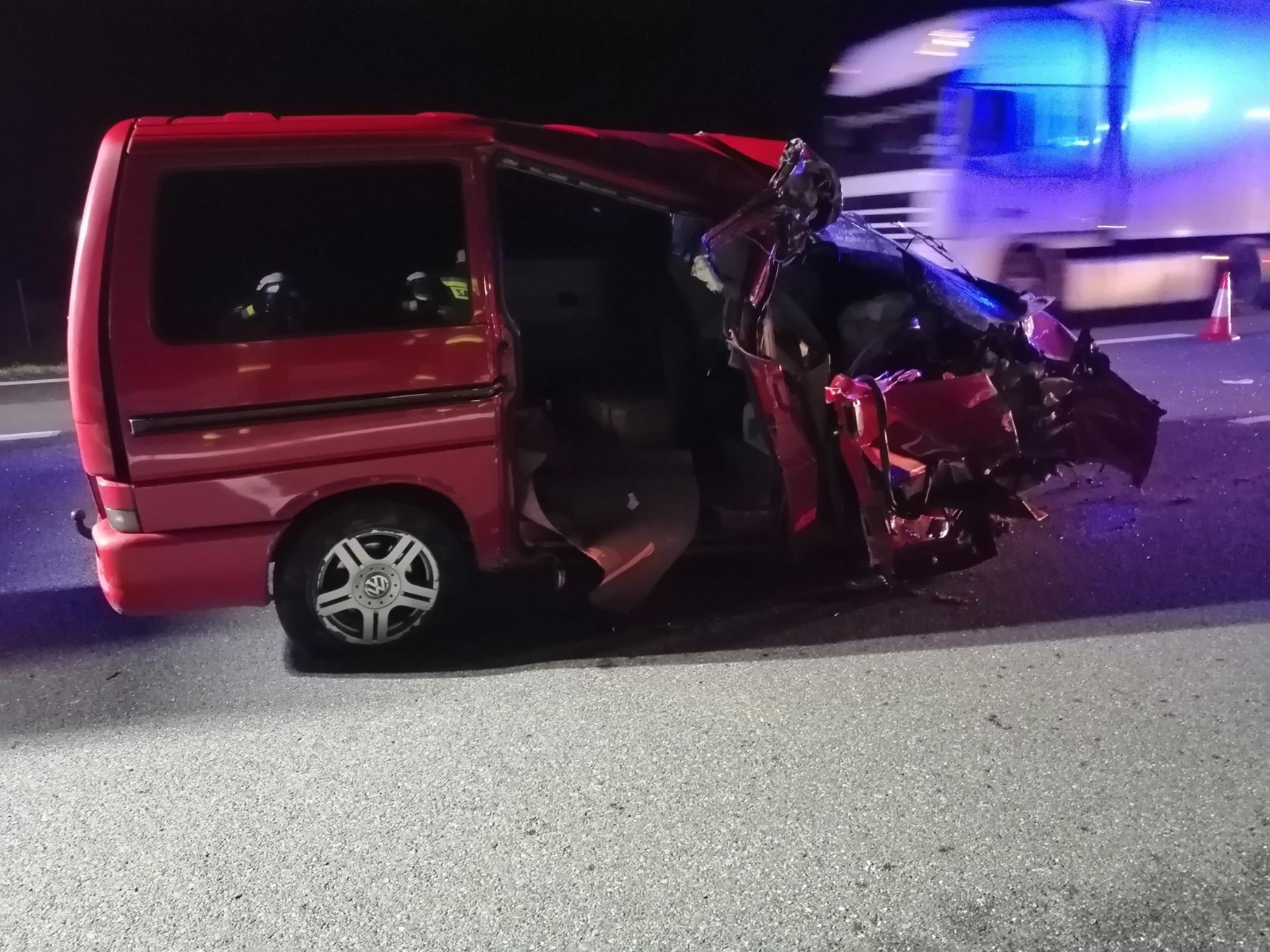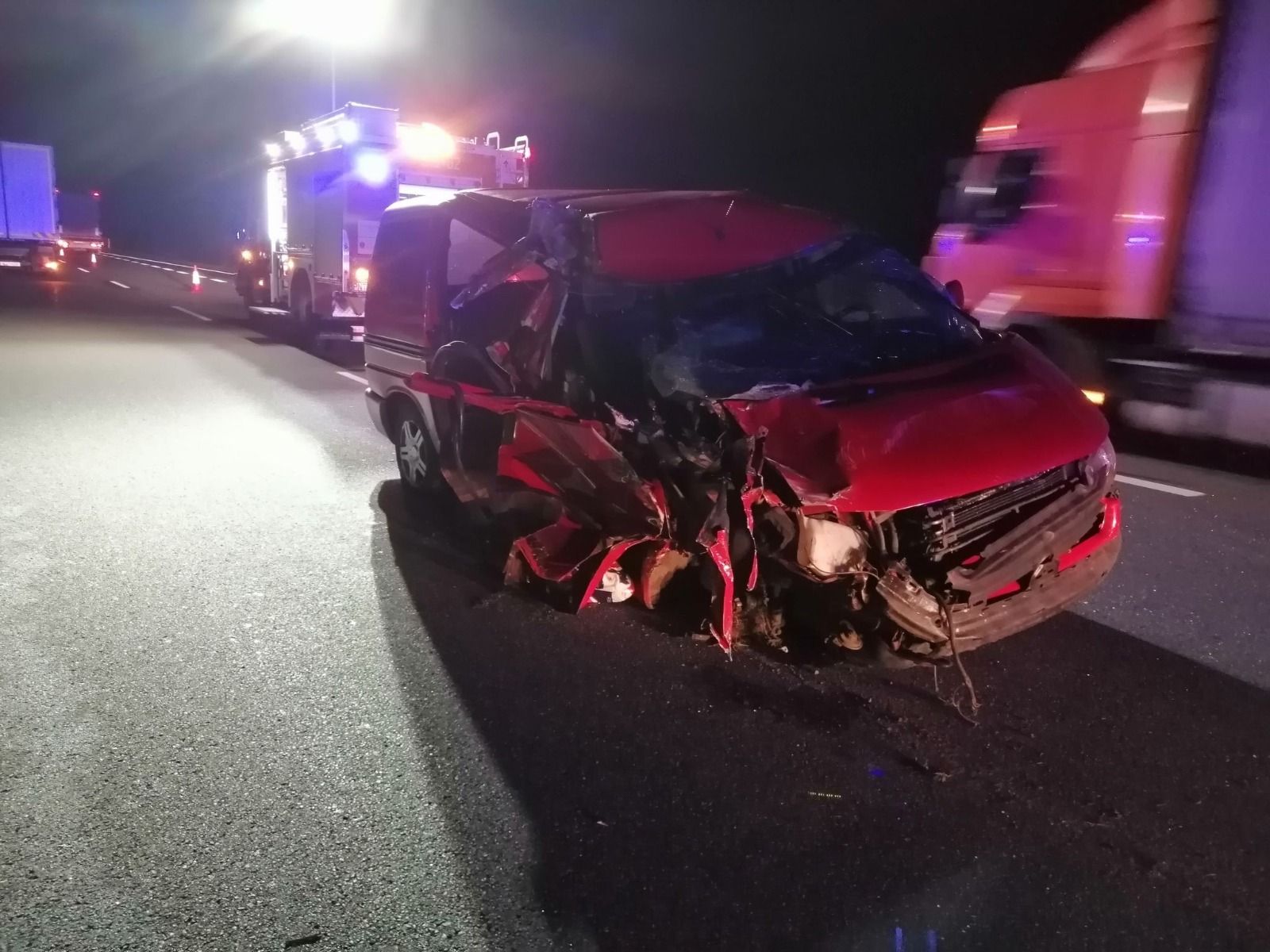 W dniu 05.10.2020 r. o godz. 23:44 do Stanowiska Kierowania Komendanta Powiatowego PSP w Nowym Tomyślu wpłynęło z Centrum Powiadamiania Ratunkowego zgłoszenie o wypadku drogowym na 114 km autostrady A2 w kierunku Świecka. Dyżurny na podstawie zgłoszenia zadysponował do zdarzenia Jednostkę Ratowniczo – Gaśniczą Nowy Tomyśl oraz zastępy Ochotniczych Straży Pożarnych z Bolewic oraz Kuślina. Po przybyciu na miejsce zdarzenia strażacy zastano uszkodzony samochód osobowy oraz ciężarowy. Osoby podróżujące opuściły pojazdy o własnych siłach. Działania JOP polegały na zabezpieczeniu oraz oświetleniu miejsca zdarzenia, odłączeniu akumulatorów w pojazdach oraz udzieleniu kwalifikowanej pierwszej pomocy osobom uczestniczącym w zdarzeniu. Po przebadaniu przez Zespół Ratownictwa Medycznego dwie osoby poszkodowane zostały zabrane do szpitala w Nowym Tomyślu.