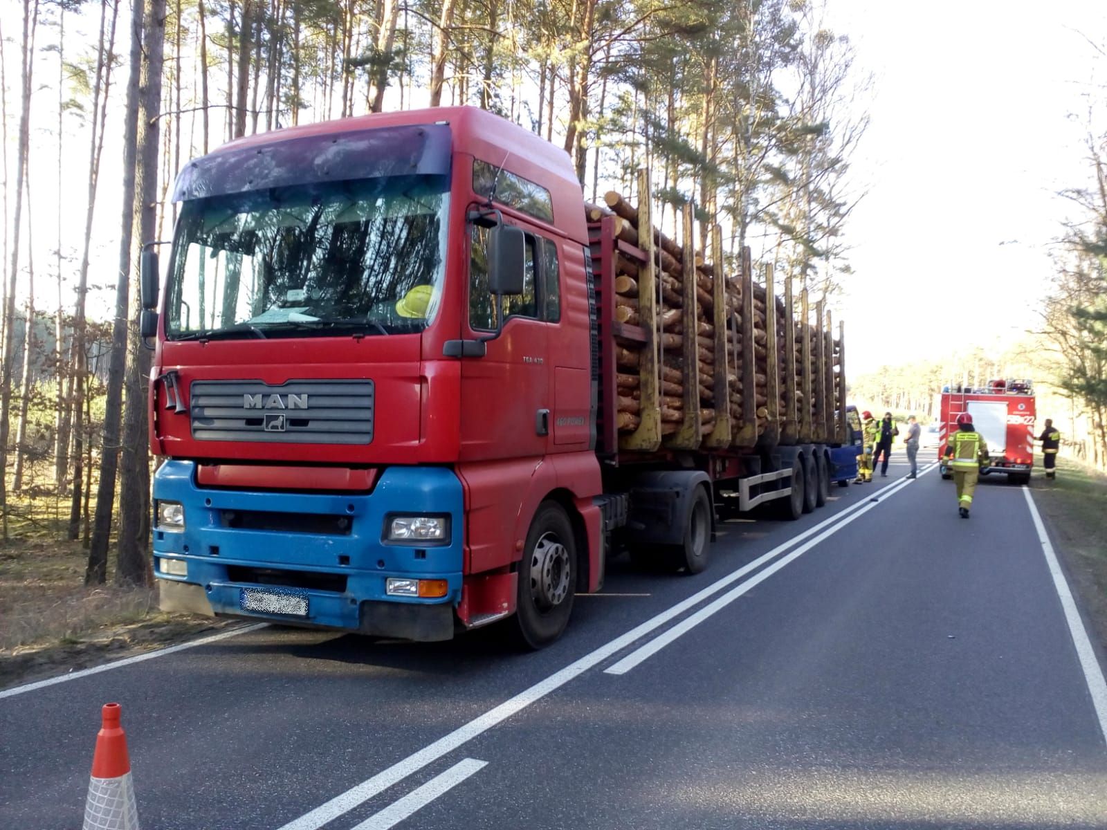 W dniu 30 marca 2021 roku o godz. 16:52 do Stanowiska Kierowania Komendanta Powiatowego PSP w Nowym Tomyślu wpłynęła zgłoszenie o wypadku samochody osobowego z samochodem ciężarowym, w którym są 2 osoby poszkodowane. Na miejsce zdarzenia zadysponowano dwa zastępy z Jednostki Ratowniczo – Gaśniczej z Nowego Tomyśla oraz zastęp OSP Miedzichowo. Po przybyciu na miejsce zdarzenia zastano samochód osobowy VW Cadym, który uderzył w tył naczepy samochody ciężarowego przewożącego drewno. W samochodzie osobowym podróżowały dwie osoby, które opuściły pojazd przed przybyciem straży pożarnej. Podczas zdarzenia kierowca samochodu ciężarowego przebywał poza pojazdem. Działania strażaków polegały na zabezpieczeniu miejsca zdarzenia, udzieleniu Kwalifikowanej Pierwszej Pomocy poszkodowanemu (kontrola ABC, wsparcie psychiczne, opatrzenie ran) oraz kierowaniu ruchem drogowym. Drugi uczestnik zdarzenia odmówił udzielenia KPP podpisując stosowny dokument. Następnie rozdzielono pojazdy przy pomocy liny stalowej oraz usunięto z jezdni pozostałości powypadkowe. Dochodzenie w sprawie ustalenia przyczyn i okoliczności zdarzenia prowadzi nowotomyska Policja.