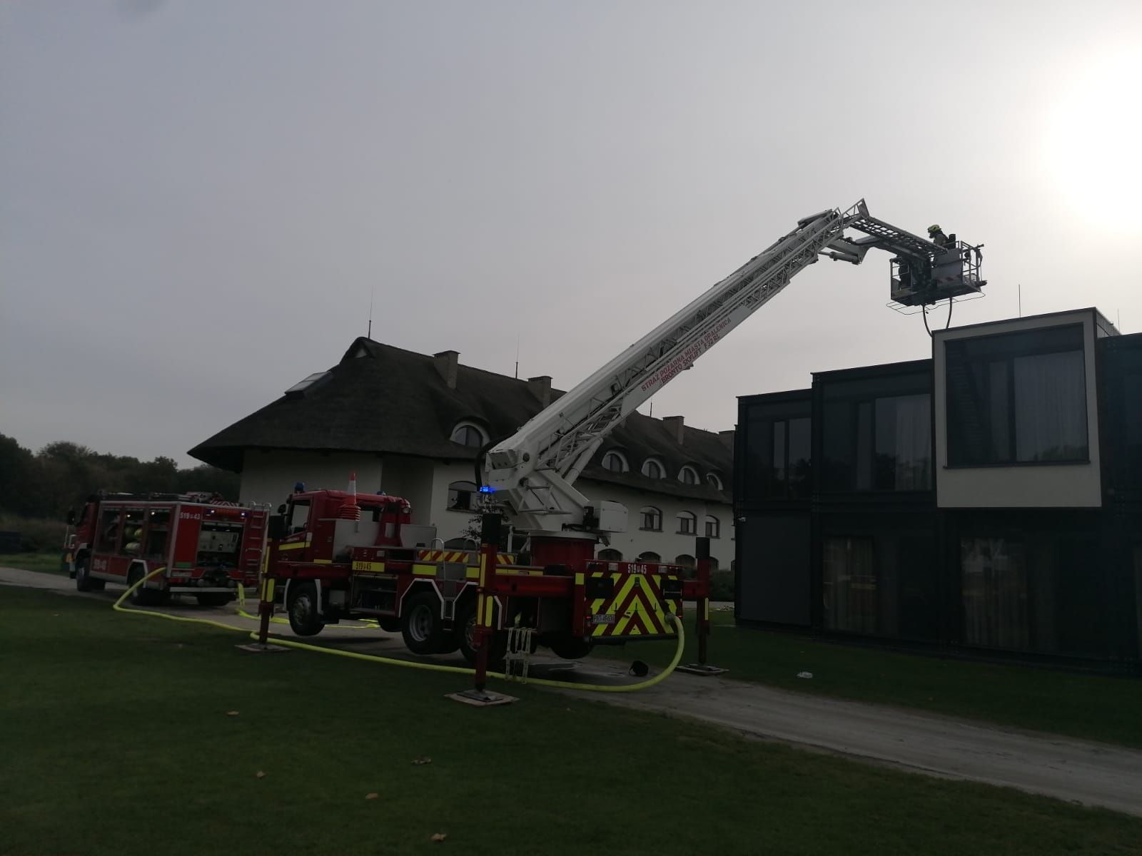 W scenariuszu ćwiczeń przyjęto, że w wyniku celowego działania innych osób nieustalonych doszło do powstania pożaru wewnątrz obiektu hotelowego, a po przeprowadzonej ewakuacji stwierdzono brak gościa hotelu oraz pracownika obsługi. W wyniku zadziałania systemu wykrywania pożaru i telefonicznym przekazaniu informacji do straży pożarnej o faktycznie zaistniałym pożarze, w pierwszym rzucie do pożaru zadysponowane zostały: zastęp GBA-Rt 2,5/16 z JRG Grodzisk Wielkopolski, zastęp GCBA 5/32 i SCHD 30 oraz w późniejszej fazie GBA-Rt 2,5/16 z OSP Opalenica i zastęp GBA-Rt 4,5/29 z OSP Wojnowice. W wyniku rozwoju pożaru doszło do silnego zadymienia w obiekcie. W trakcie ćwiczeń wykorzystano dwa hydranty nadziemne znajdujące się na terenie hotelu, jeden wpięty w miejską sieć hydrantową, natomiast drugi zasilany poprzez pompę ze studni głębinowej. Do zadań poszczególnych zastępów należało podawanie prądów gaśniczych w natarciu i obronie obiektu objętego pożarem, odnalezienie i podjęcie osób poszkodowanych z wnętrza obiektu, stworzenie punktu medycznego, w oczekiwaniu na Zespół Ratownictwa Medycznego udzielenie kwalifikowanej pierwszej pomocy osobom poszkodowanym oraz stała i zorganizowana podmiana ratowników.