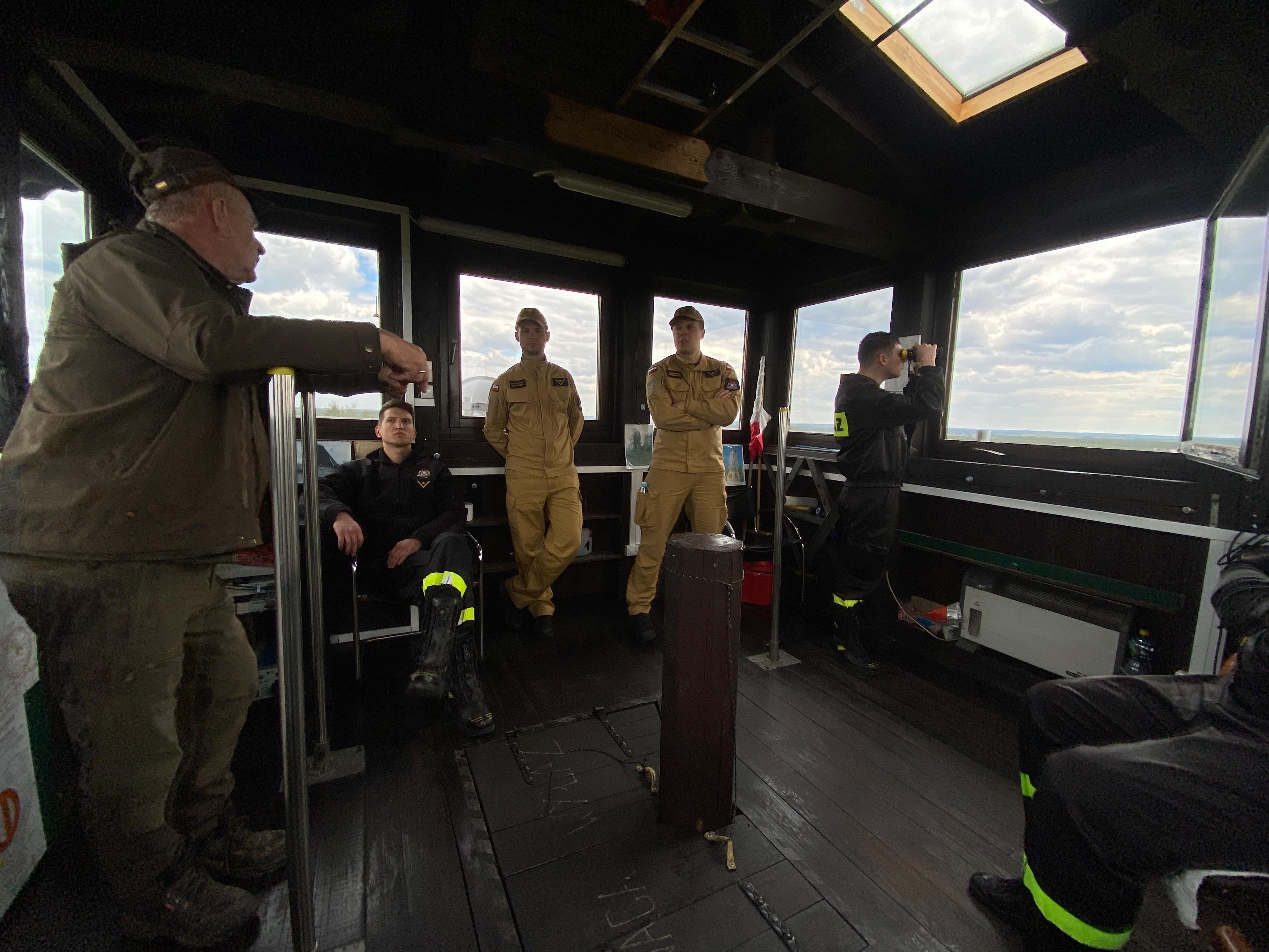 W dniu 26.04.2024 roku odbyło się spotkanie funkcjonariuszy KP PSP w Nowym Tomyślu stanowiących obsadę Stanowiska Kierowania Komendanta Powiatowego PSP. Tematyką spotkania było szczegółowe zapoznanie się z dokumentacją wymaganą w metodyce podczas przeprowadzania inspekcji operacyjnej dokonywanej w SKKP przez funkcjonariuszy zespołu inspekcyjnego z KW PSP jak i z KG PSP. W dalszej części funkcjonariusze dzięki uprzejmości Nadleśnictwa Bolewice mieli okazję zapoznać się z wyposażeniem nowego Punktu Alarmowo-Dyspozytorskiego Nadleśnictwa, rozpoznać operacyjnie punkt poboru wody zlokalizowany w Leśnictwie Królewiec na jeziorze Głębokim oraz zwiedzić dostrzegalnię pożarową Nadleśnictwa Bolewice zlokalizowaną w Leśnictwie Leśny Folwark na Czarciej Górze. Rolę przewodnika po terenach leśnych pełnił specjalista ds. ppoż. Nadleśnictwa Bolewice p. Grzegorz Szyld.