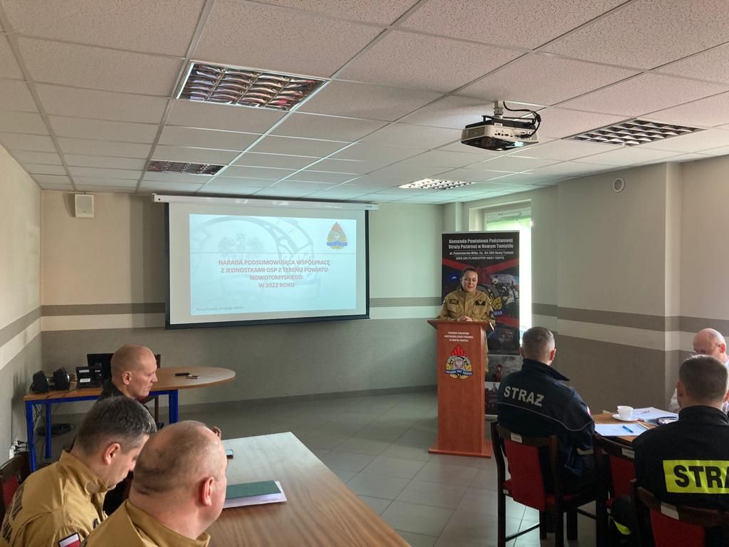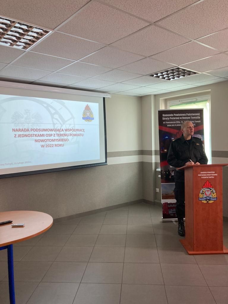 W czwartek 16 lutego 2023 roku w siedzibie Komendy Powiatowej PSP w Nowym Tomyślu przeprowadzono naradę z przedstawicielami Urzędów Gmin, Komendantami Gminnymi OSP oraz Naczelnikami jednostek OSP w KSRG powiatu nowotomyskiego.