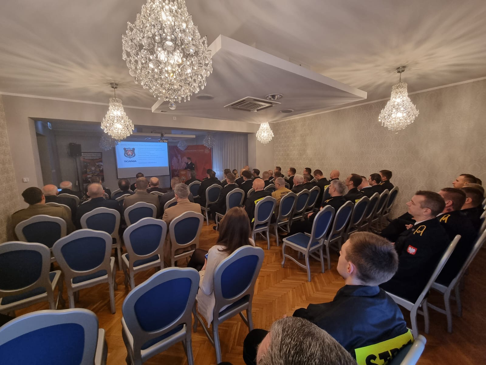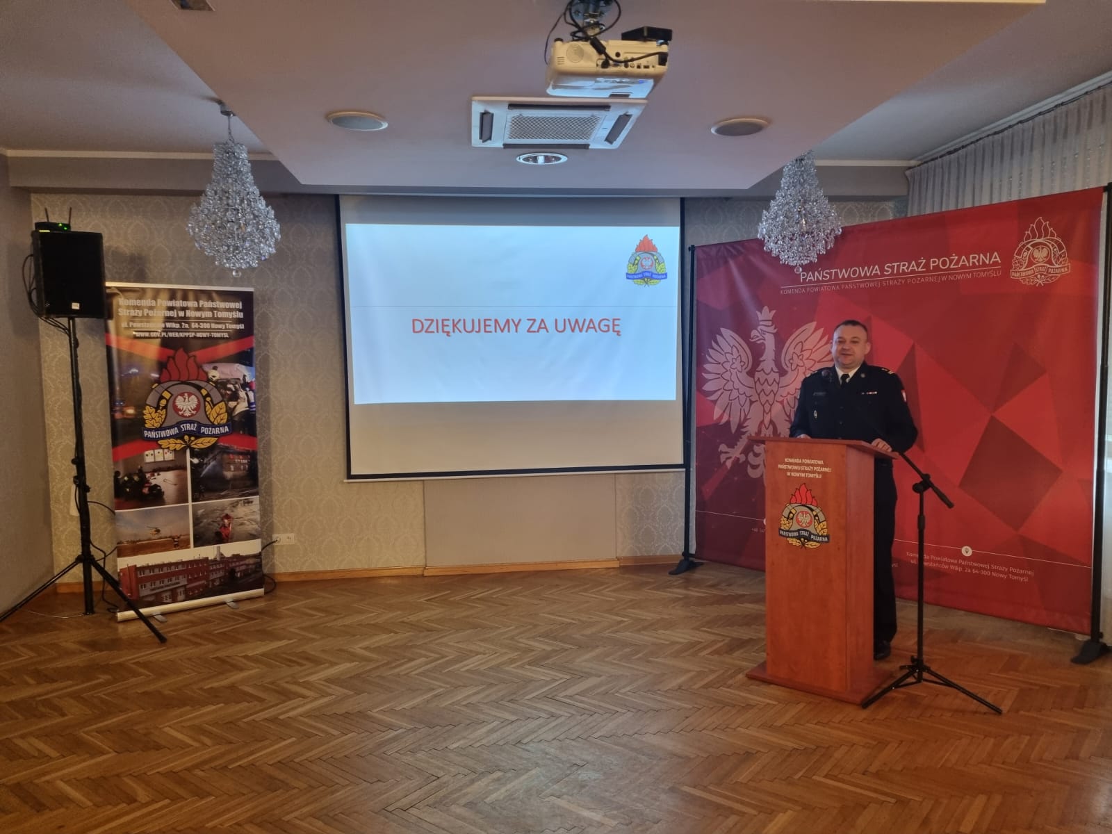 W sali Nowotomyskiego Ośrodka Kultury zebrali się funkcjonariusze KP PSP Nowy Tomyśl oraz zaproszeni goście: