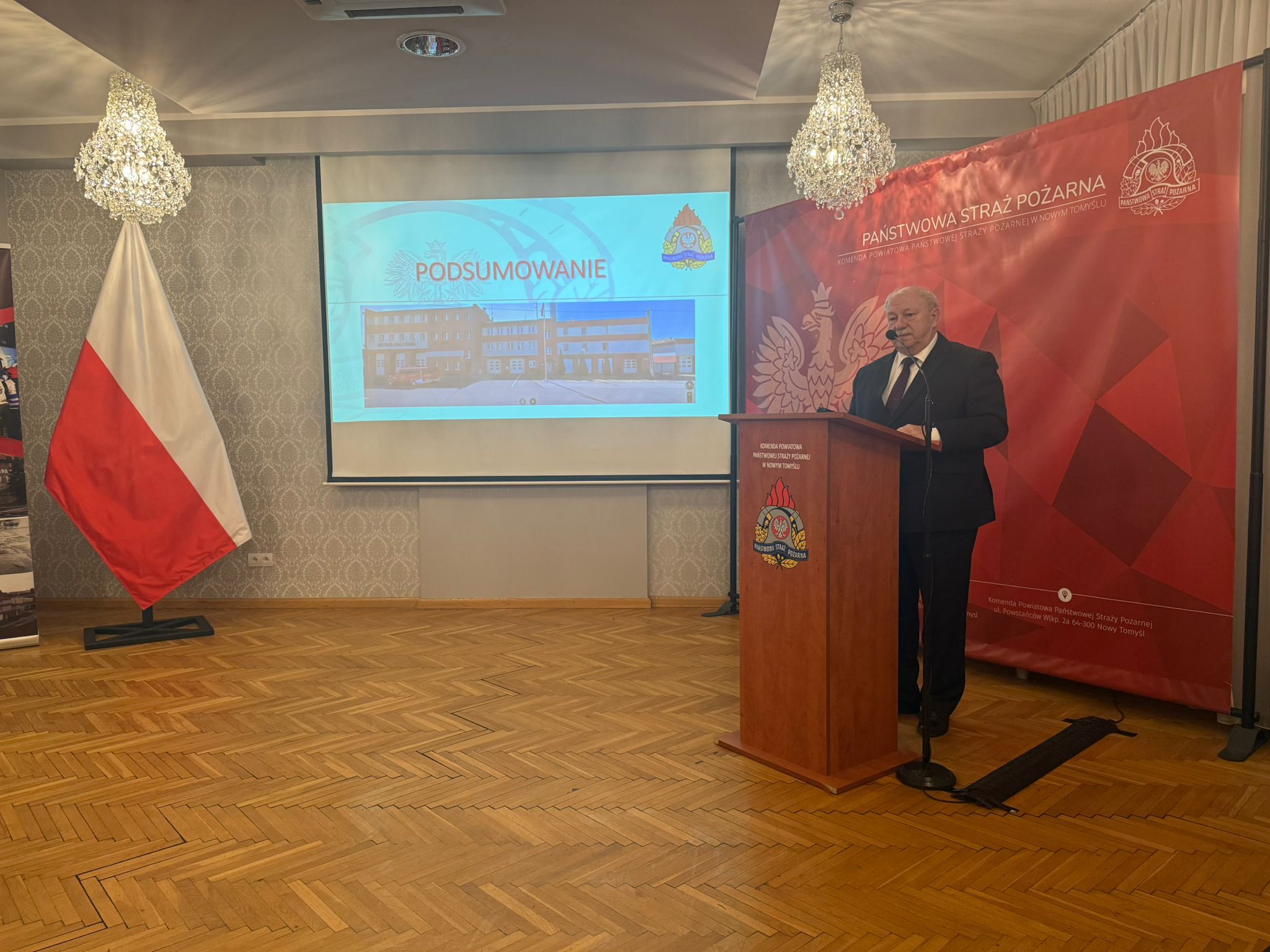 Zastępca Wielkopolskiego Komendanta Wojewódzkiego st. bryg. Tomasz Grelak, podziękował za zaangażowanie i profesjonalizm nowotomyskich strażaków. Wspomniał o szeregu nowych zadań i wyzwań związanych z Programem Ochrony Ludności i Obrony Cywilnej.