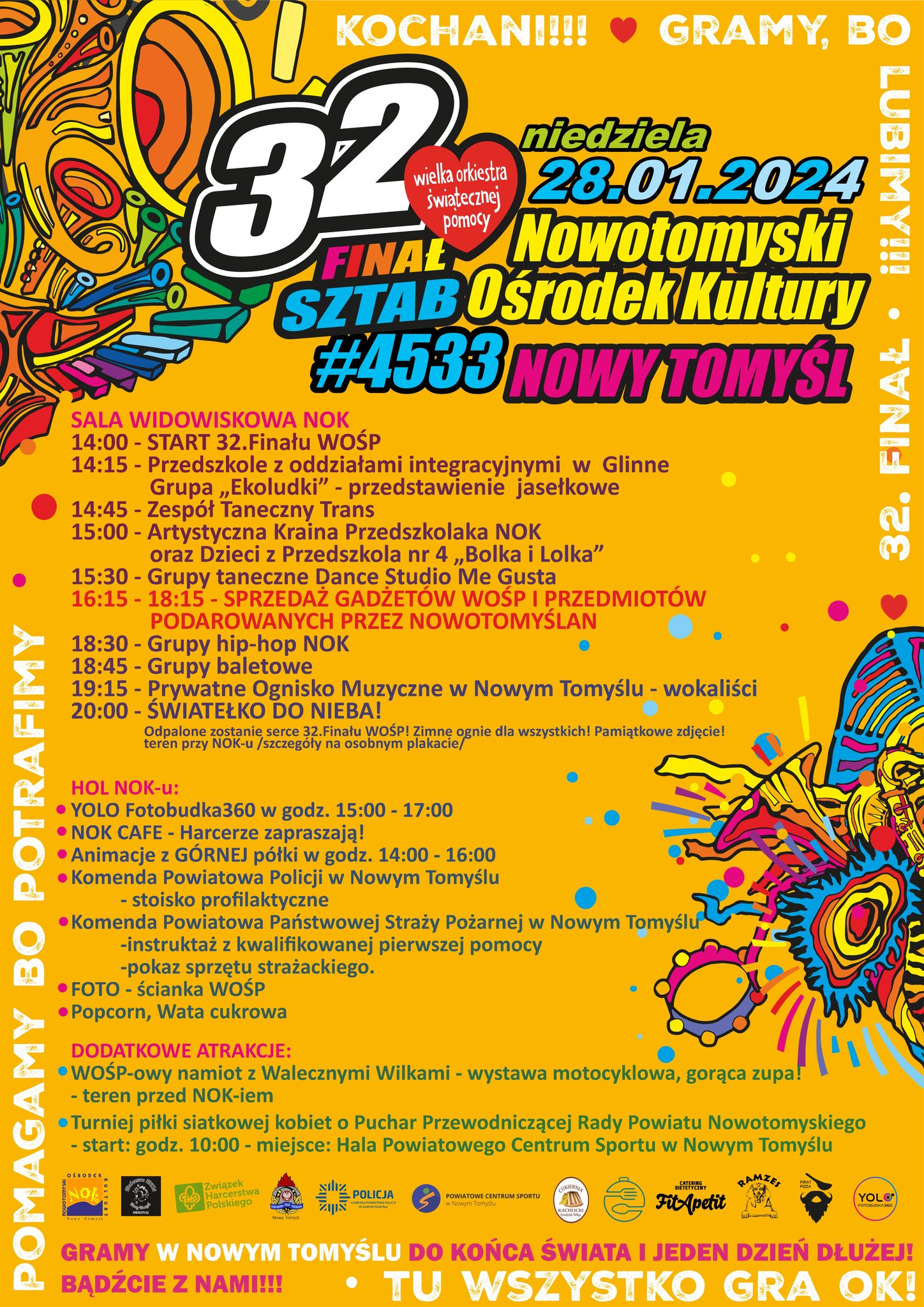 Zapraszamy 28 stycznia od godziny 14.00 na 32. finał WOŚP do Nowotomyskiego Ośrodka Kultury na liczne atrakcje z nowotomyskimi strażakami.