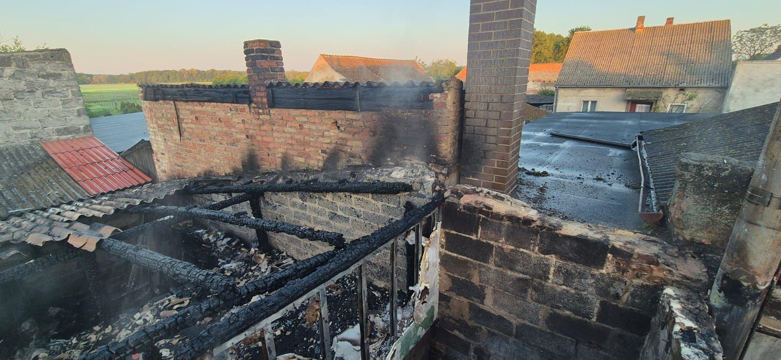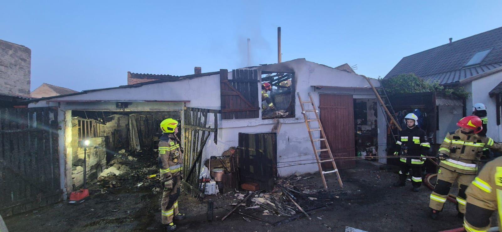 Po przybyciu zastępów na miejsce zdarzenia zastano rozwinięty pożar budynku gospodarczego w zwartej zabudowie.