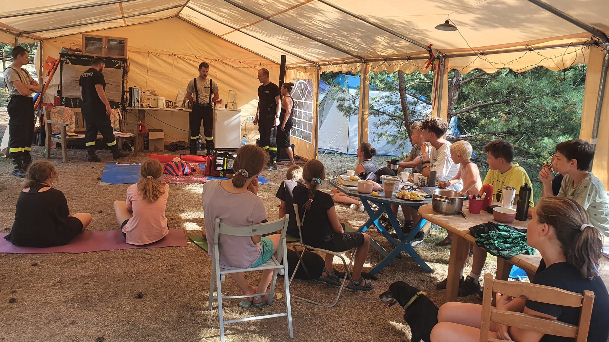 W związku z powyższym, w dniu 4 sierpnia 2022 roku strażacy z jednostki OSP Miedzichowo odwiedzili obozowisko w ramach prewencji społecznej. Młodzież miała możliwość zapoznać się z wyposażeniem samochodu pożarniczego oraz w ramach wykładu mieli przedstawione zagadnienia: