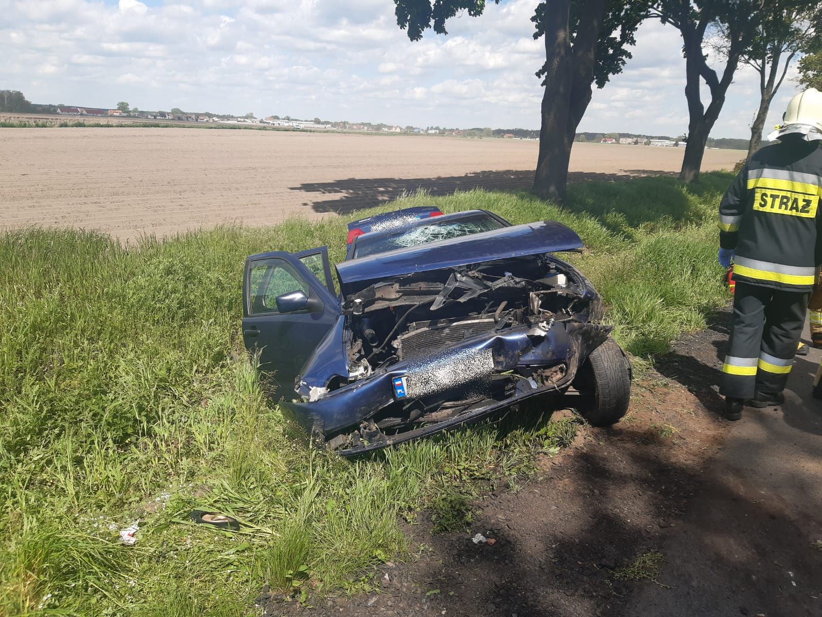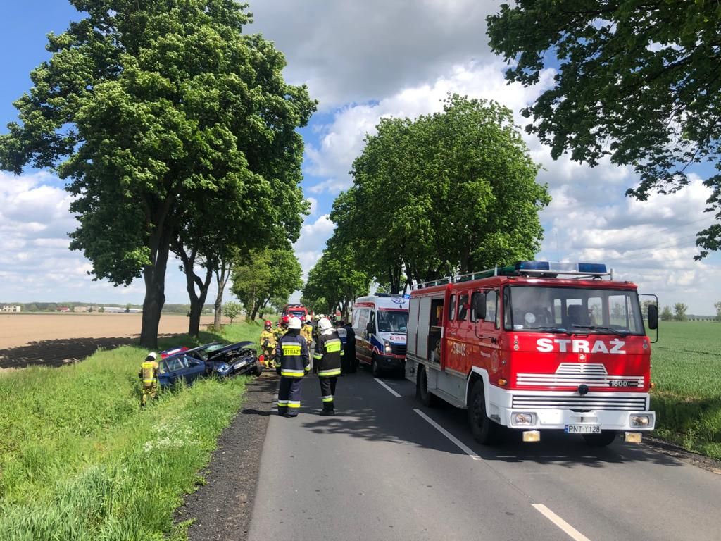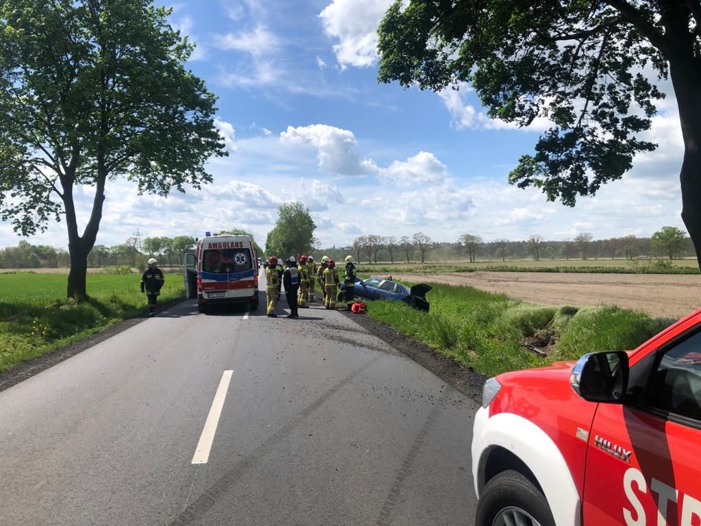 W dniu 21 maja 2021 roku o godz. 10:58 do Stanowiska Kierowania Komendanta Powiatowego PSP w Nowym Tomyślu wpłynęło zgłoszenie o wypadku, do którego doszło w okolicach Przyprostyni jadąc w kierunku Chobienic. Z informacji wynikało również, że w zdarzeniu brało udział dziecko oraz kobieta w ciąży. Na miejsce zadysponowano 3 zastępy z nowotomyskiej JRG oraz zastępy OSP Zbąszyń i Przyprostynia. Po dojeździe pierwszych zastępów straży pożarnych na miejsce zdarzenia zastano samochód osobowy stojący w przydrożnym rowie. Trzy osoby podróżujące opuściły pojazd przed przybyciem straży. Kobieta w 26 tygodniu ciąży leżała na poboczu z obrażeniami głowy, mężczyzna chodzący, uskarżający się na ból nogi, dziecko było pod opieką brata, który przybył na miejsce zdarzenia. Działania strażaków polegały na zabezpieczeniu miejsca zdarzenia, odłączeniu akumulatora i zakręceniu butli z gazem w pojeździe oraz udzieleniu kwalifikowanej pierwszej pomocy poszkodowanym. Wszystkie trzy osoby po przebadaniu przez ZRM zostały zabrane do szpitala w Nowym Tomyślu.