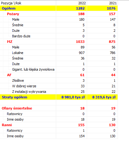 Porównanie ilości zdarzeń z rokiem 2021 – stan na dzień 28.11.2022 r.