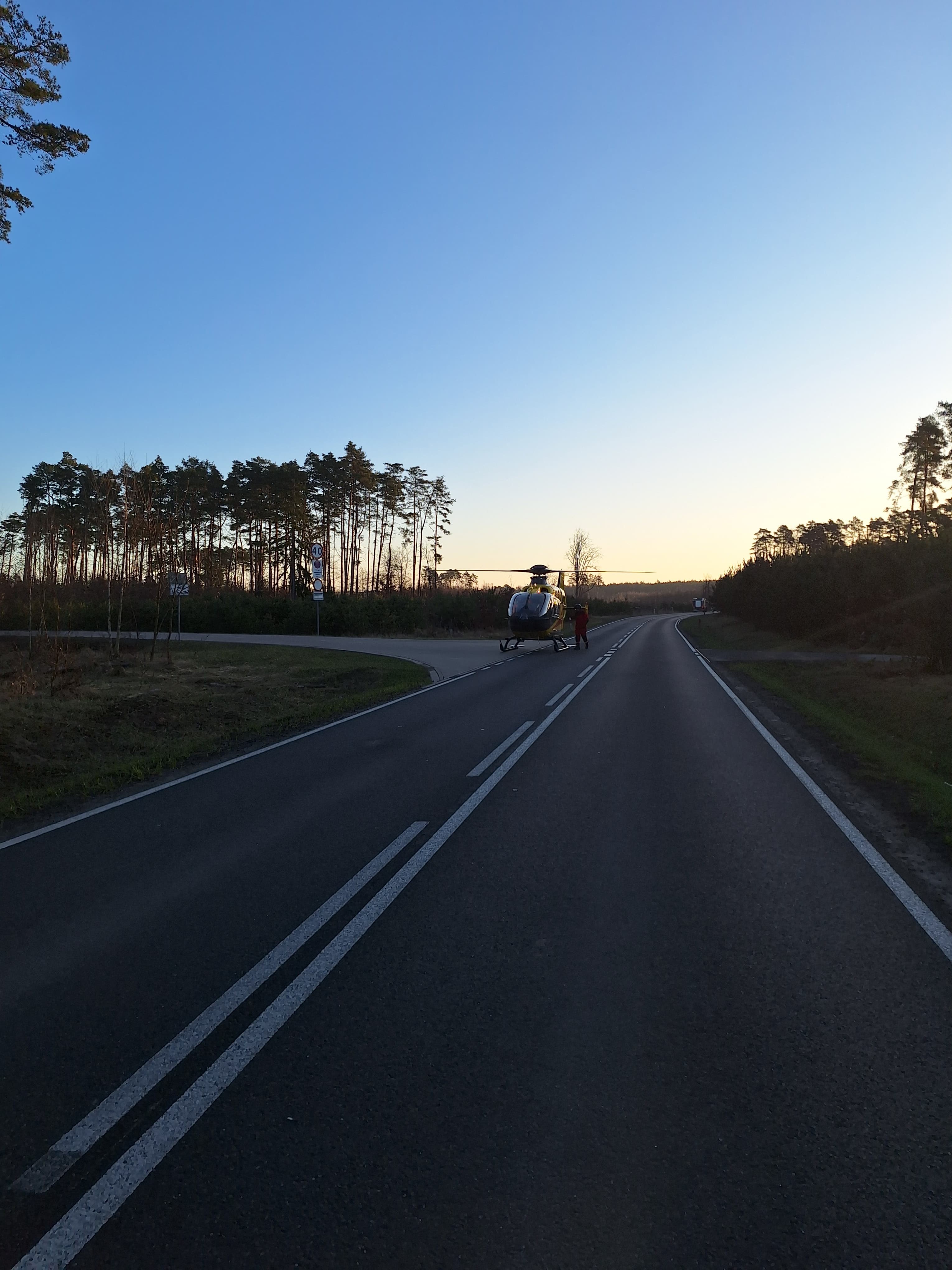 Działania strażaków polegały na zabezpieczeniu miejsca zdarzenia, udzieleniu kwalifikowanej pierwszej pomocy osobie zakleszczonej w pojeździe, wykonaniu dostępu do osoby poszkodowanej za pomocą narzędzi hydraulicznych oraz jej ewakuacji przy pomocy noszy typu deska oraz odłączeniu akumulatorów w pojazdach. Dalsze działania polegały na zabezpieczeniu lądowania LPR. Decyzją przybyłego na miejsce lekarza dwie osoby trafiły do szpitala.