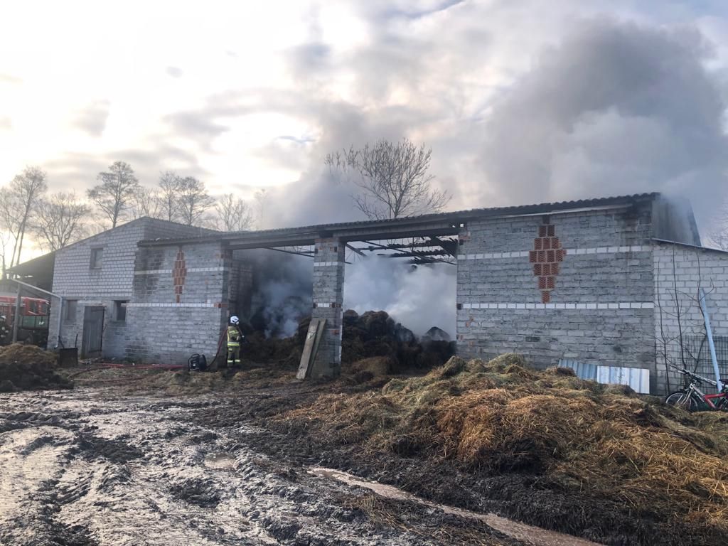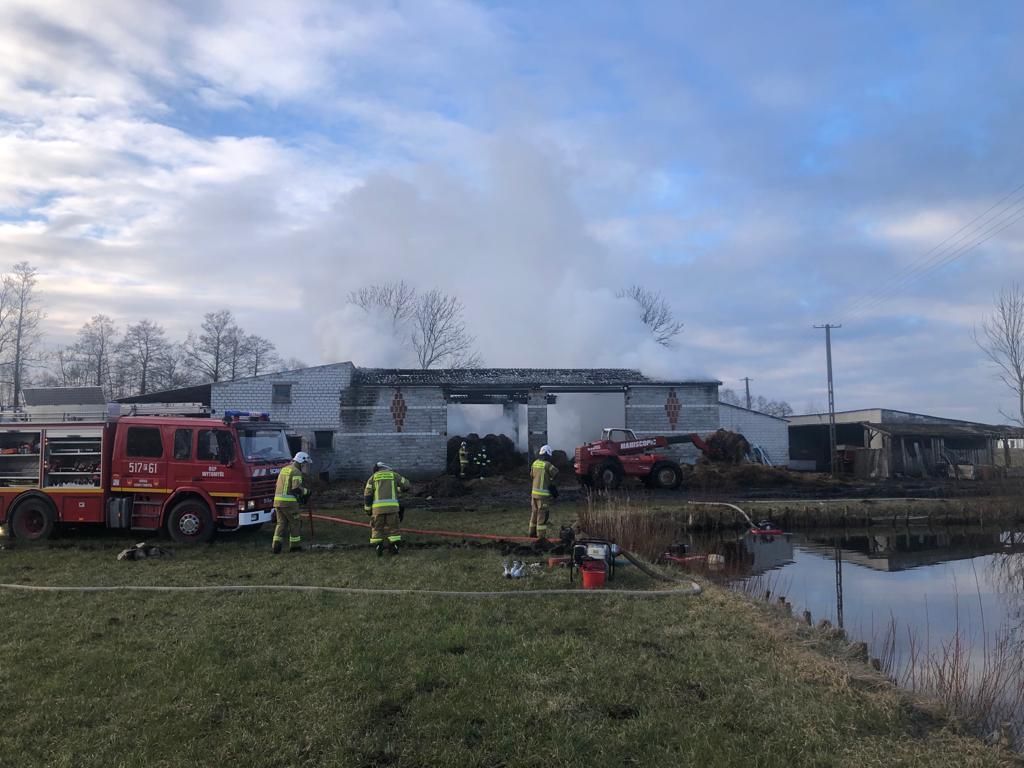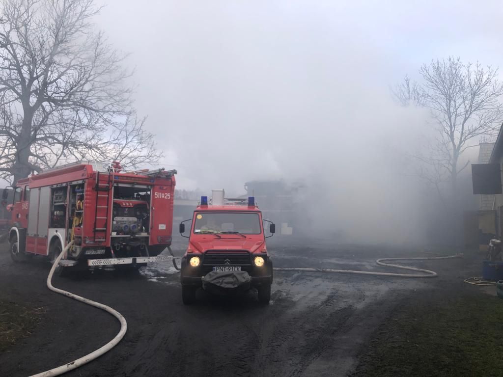 W dniu 4 marca 2022 roku nad ranem o godz. 3:49 do Stanowiska Kierowania Komendanta Powiatowego PSP w Nowym Tomyślu wpłynęło zgłoszenie o pożarze stodoły w zabudowie gospodarczej w miejscowości Glinno k/Nowego Tomyśla. Dyżurny SKKP do działań zadysponował zastęp gaśniczy oraz z uwagi na wysokość obiektu drabinę mechaniczną SD-30 z Jednostki Ratowniczo Gaśniczej w Nowym Tomyślu oraz zastępy z jednostek Ochotniczej Straży Pożarnej z Bukowca, Wytomyśla i Jastrzębska Starego. Po przybyciu pierwszych zastępów na miejsce zdarzenia zastano palącą się stodołę, w środku której znajdowało się 140 balotów słomy oraz 75 balotów siana. Stodoła murowana, pokryta eternitem, konstrukcja dachu metalowo drewniana. Stodoła przylegała bezpośrednio szczytem do chlewni. Właściciele przed przybyciem na miejsce strażaków wyprowadzili z budynku objętego ogniem przyczepę rolniczą. Działania straży pożarnej polegały w pierwszej fazie na zabezpieczeniu miejsca zdarzenia oraz podaniu trzech prądów wody w obronie zagrożonego budynku gospodarczego oraz sześciu prądów wody w natarciu na palącą się stodołę w tym również prądu wody z kosza drabiny mechanicznej. Do działań zadysponowano oficera w dyspozycji komendanta oraz zastęp GCBM 15/18 z jednostki OSP Bolewice, który dostarczył na sobie 15.000 litrów wody i posłużył w pierwszej fazie jako bufor. W dalszej części akcji zasilanie wodne stanowił staw znajdujący się w odległości ok 20 m od palącego się budynku oraz hydrant zlokalizowany w odległości ok 200 m. Z uwagi na panujące silne zadymienie i wymianę ratowników w strefie zadymienia, na miejsce zadysponowano zastęp OSP Bukowiec z mobilną sprężarką do napełniana butli aparatów ochrony dróg oddechowych (łącznie napełniono 18 butli). W działaniach wykorzystano również ciągnik z ładowaczem czołowym oraz ładowacz teleskopowy. Zawartość stodoły sukcesywnie wywożono na pobliską łąkę i dogaszano.
