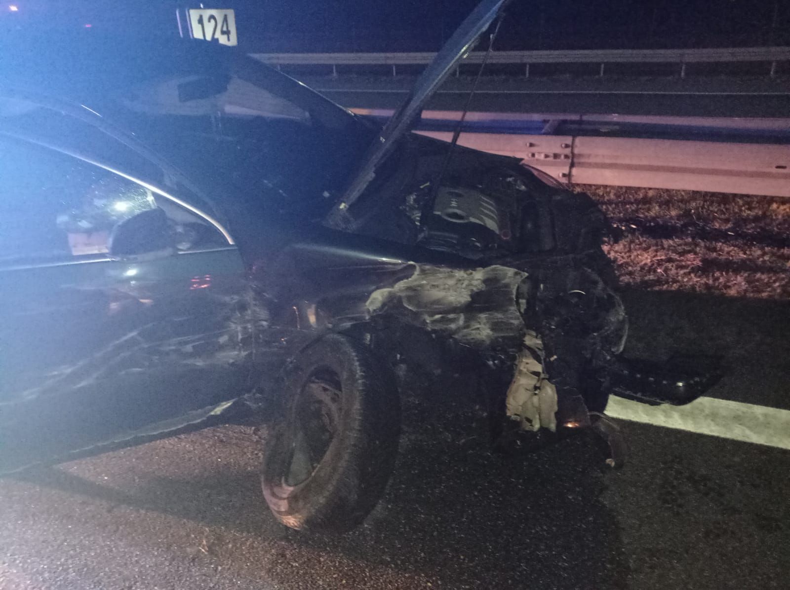 W dniu 27 listopada 2021 roku o godz. 5:40 do Stanowiska Kierowania Komendanta Powiatowego PSP w Nowym Tomyślu wpłynęło zgłoszenie o wypadku samochodu osobowego i ciężarówki na 124 km autostrady A2 w kierunku Warszawy. Dyżurny SKKP do działań zadysponował dwa zastępy ratownictwa technicznego z JRG Nowy Tomyśl oraz jednostkę OSP Kuślin. Po przybyciu pierwszego zastępu straży pożarnej na miejsce zdarzenia zastano samochód osobowy stojący na pasie szybkim autostrady oraz samochód ciężarowy z naczepą typu silos na pasie awaryjnym. Działania strażaków polegały na zabezpieczeniu i oświetleniu miejsca zdarzenia, udzieleniu KPP osobie poszkodowanej (wsparcie psychiczne, termoizolacja), odłączeniu akumulatora w samochodzie osobowym, neutralizacji i sorpcji płynów eksploatacyjnych oraz na czas usuwania pozostałości powypadkowych wstrzymano ruchu na autostradzie. Przybyły na miejsce Zespół Ratownictwa Medycznego zdecydował o przetransportowaniu osoby poszkodowanej do szpitala w Nowym Tomyślu.