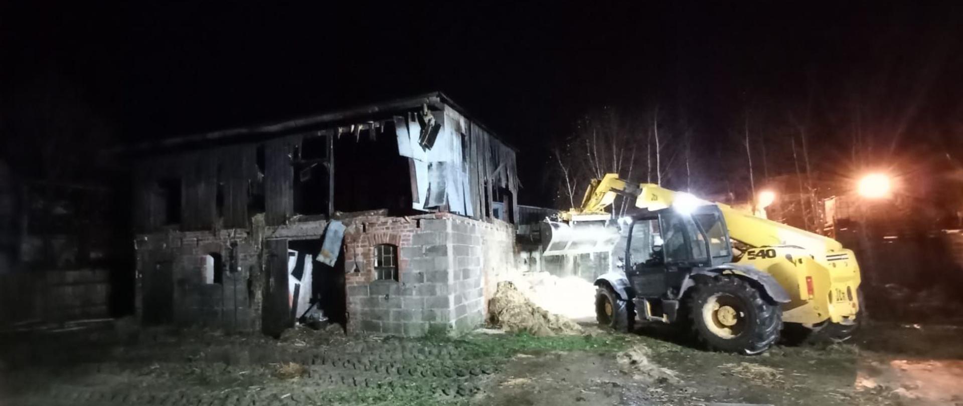 W dniu 21 listopada 2021 roku o godz. 15:19 do Stanowiska Kierowania Komendanta Powiatowego PSP w Nowym Tomyślu wpłynęło zgłoszenie o pożarze stodoły w zwartej zabudowie gospodarstwa w miejscowości Zębowo gm. Lwówek. Dyżurny SKKP do działań zadysponował zastęp gaśniczy GCBA-Rt i drabinę mechaniczną SD 30 z JRG Nowy Tomyśl oraz jednostkę OSP Lwówek, OSP Bolewice, OSP Zębowo i OSP Linie. Po przyjeździe pierwszego zastępu na miejsca zdarzenia zastano pożar budynku gospodarczego, paliła się słoma składowana na poddaszu, a zagrożone były znajdujące się w bezpośrednim sąsiedztwie kolejne budynki gospodarcze, na miejscu panowało silne zadymienie. W budynku nie znajdowały się zwierzęta. Działania strażaków polegały na zabezpieczeniu miejsca zdarzenia, podaniu jednego prądu wody w natarciu na palącą się słomę na poddaszu oraz jednego prądu wody w obronie na sąsiednie budynki gospodarcze. Następnie przy użyciu wentylatorów nadciśnieniowych oddymiono poddasze budynku oraz cały teren posesji. Po ugaszeniu pożaru dalsze działania polegały na sukcesywnym wyrzucaniu nadpalonej słomy z poddasza na zewnątrz budynku oraz dogaszeniu jej. Usunięto również nadpalone elementy konstrukcji budynku. W działaniach wykorzystano ładowacz, przy pomocy którego dogaszoną słomę wywieziono na pobliskie pole. Łącznie w działaniach udział brało 7 zastępów oraz 37 strażaków.
