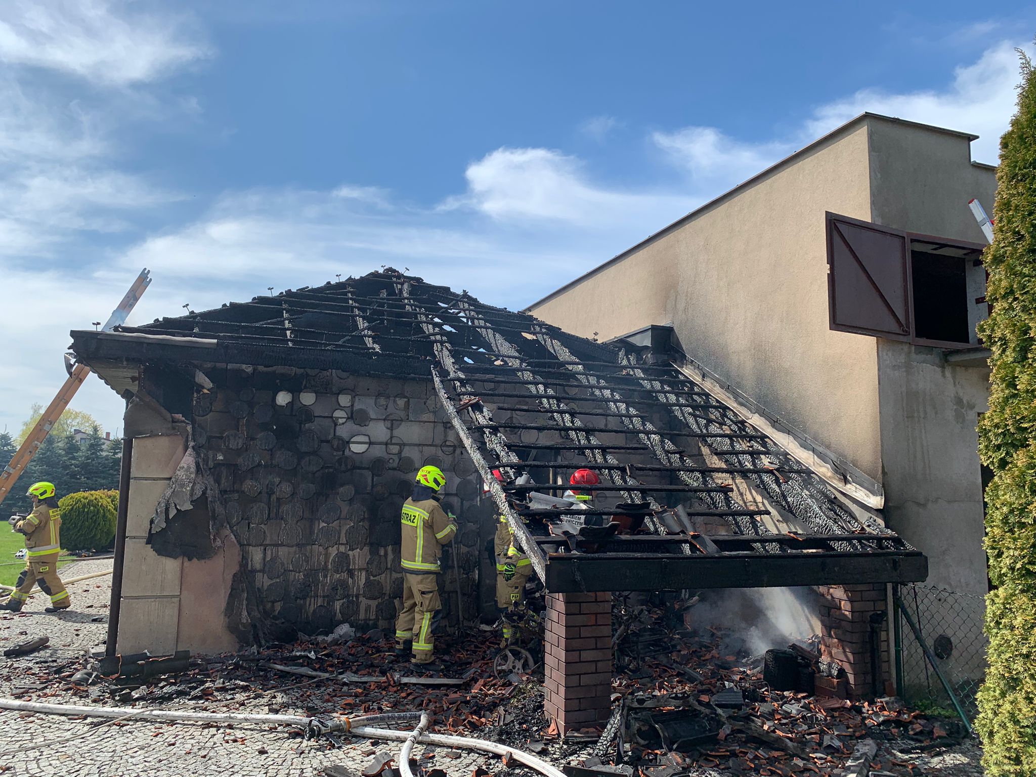 W dniu 29 kwietnia o godzinie 10:08 do Stanowiska Kierowania Komendanta Powiatowego PSP w Nowym Tomyślu wpłynęło zgłoszenie o pożarze budynku gospodarczego. Dyżurny SKKP do działań zadysponował zastępy gaśnicze i drabinę mechaniczną SD-30 z Jednostki Ratowniczo Gaśniczej w Nowym Tomyślu oraz zastępy z jednostek Ochotniczej Straży Pożarnej z Borui Kościelnej, Wytomyśla. Po przybyciu strażaków na miejsce zdarzenia zastano palący się budynek gospodarczy z wiatą, zagospodarowany na garaż, biuro i spiżarnię, przylegający bezpośrednio do budynku gospodarczo - garażowego na sąsiedniej działce. Pożar zagrażał sąsiednim zabudowaniom. Działania straży pożarnej polegały w pierwszej fazie na zabezpieczeniu miejsca zdarzenia oraz podaniu 1 prądu gaśniczego w natarciu do płonącego budynku oraz 1 prądu wody w obronie na zagrożony sąsiedni budynek. Dalsze działania polegały na usunięciu tlących się materiałów z budynku i dogaszeniu ich na zewnątrz, oddymieniu obiektu przy pomocy agregatu oddymiającego oraz rozebraniu poszycia dachowego. Pogorzelisko przeszukano i sprawdzono kilkukrotnie kamerą termowizyjną. Spaleniu uległa konstrukcja dachu, wyposażenie pomieszczeń. Działaniami dowodził Zastępca Komendanta Powiatowego PSP w Nowym Tomyślu. Dochodzenie w sprawie ustalenia przyczyny i okoliczności powstania pożaru prowadzi Policja.