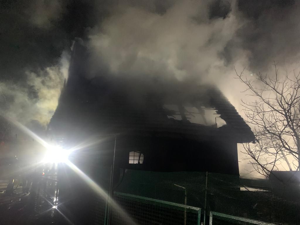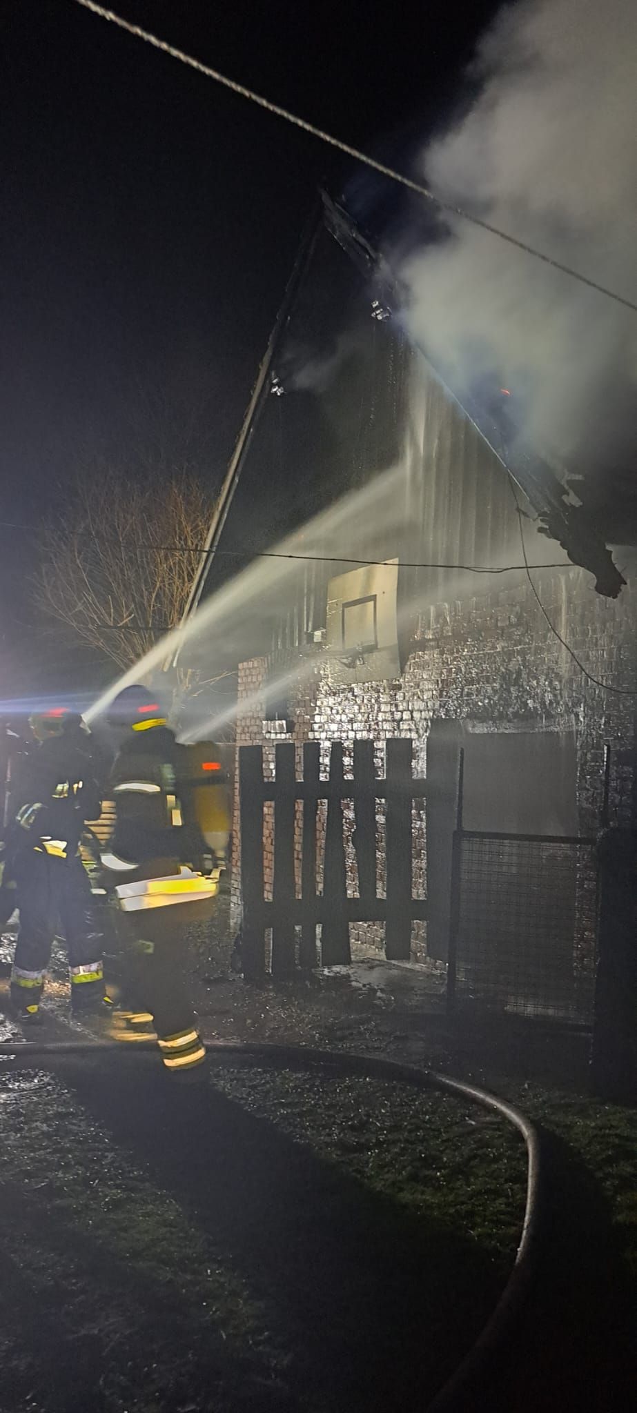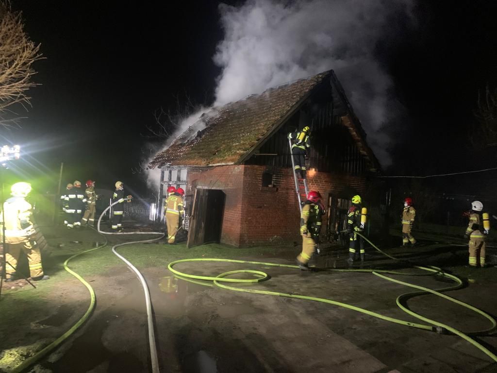 Podczas dojazdu pierwszych zastępów do miejsca zdarzenia ogień był widoczny z daleka, cały budynek był objęty ogniem. Po przyjeździe na miejsca zdarzenia zastano budynek gospodarczy o wymiarach w całości objęty ogniem. Na miejscu obecny był właściciel budynku, który przekazał informację, iż nie ma osób poszkodowanych, wewnątrz pomieszczeń gospodarskich nie ma pojazdów oraz innych substancji niebezpiecznych. Budynek służył jako miejsce składowania sprzętu warsztatowego oraz jako kurnik.