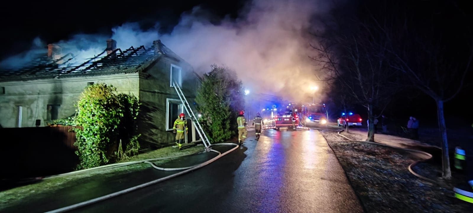 Po przybyciu straży pożarnej na miejsce zdarzenia zastano całe poddasze i dach w ogniu. Osoba mieszkająca a zarazem zgłaszająca pożar ewakuowała się przed przebyciem zastępów straży.