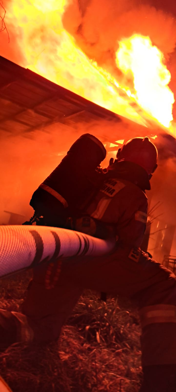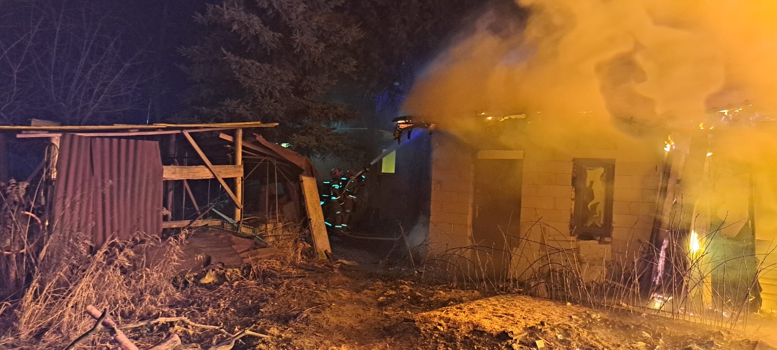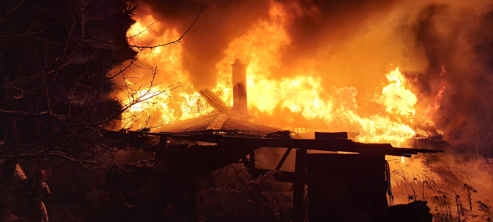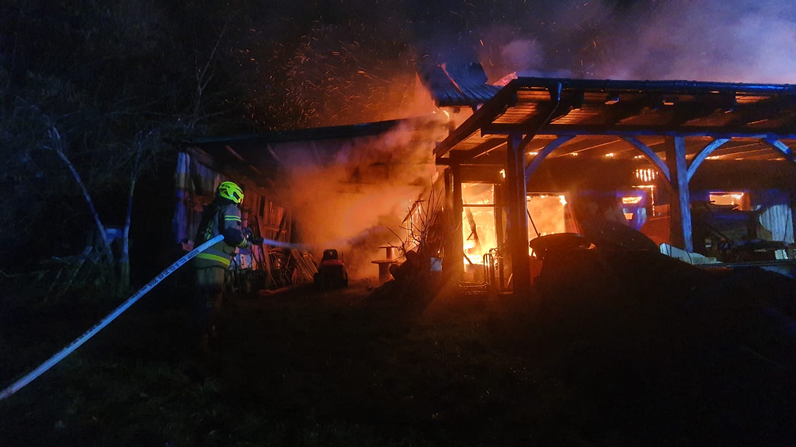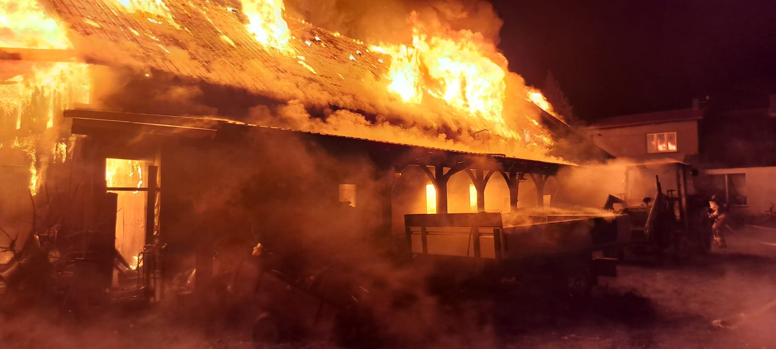 Po przybyciu na miejsce zdarzenia jednostek straży pożarnej zastano w całości objęty ogniem budynek gospodarczy częściowo zaadoptowany na funkcję mieszkalną. W momencie pożaru w budynku nie przebywały żadne osoby. W bliskim sąsiedztwie obiektu objętego ogniem zlokalizowany był zagrożony budynek mieszkalny.