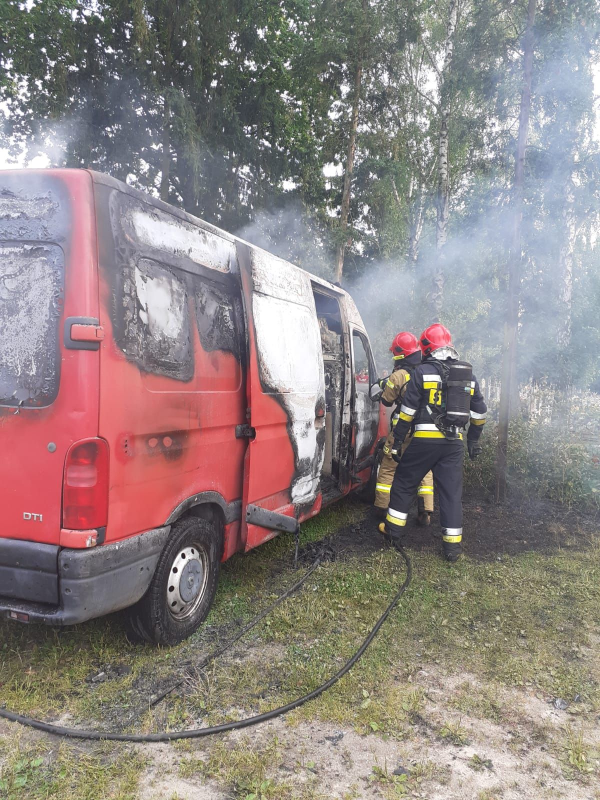 W dniu 26 lipca 2021 roku o godz. 17:32 do Stanowiska Kierowania Komendanta Powiatowego PSP w Nowym Tomyślu zgłoszenie o pożarze samochodu dostawczego w Nowym Tomyślu przy ul. Targowej. Na miejsce zdarzenia zadysponowano samochód gaśniczy GCBA-Rt 5/32 z nowotomyskiej Jednostki Ratowniczo - Gaśniczej. Po przybyciu na miejsce zdarzenia zastępu straży pożarnej zastano samochód dostawczy w całości objęty pożarem. Działania strażaków polegały na zabezpieczeniu miejsca zdarzenia oraz podaniu 1 prądu wody w natarciu na palącego się busa. Po ugaszeniu cały pojazd został sprawdzony kamerą termowizyjną i rozłączono akumulator. Niestety w wyniku pożaru samochód uległ całkowitemu spaleniu. Przyczyna powstania pożaru nie została ustalona, a dochodzenie w sprawie prowadzi nowotomyska Policja.