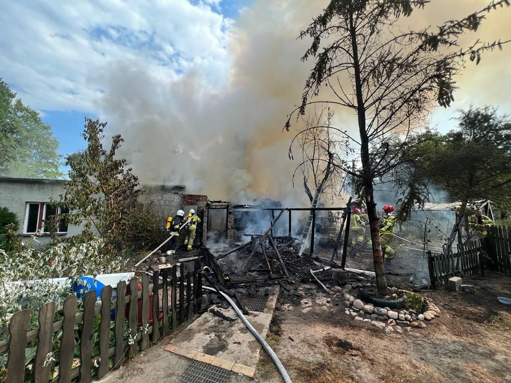 Po przyjeździe pierwszych zastępów straży pożarnych na miejsca zdarzenia zastano przedstawicieli Nadleśnictwa samochodem patrolowym, którzy podawali jeden prąd wody w natarciu na palącą suchą trawę wokół palącego się budynku mieszkalnego, a przybyły na miejsce samolot patrolowo-gaśniczy dokonał zrzutu wody na ognisko pożaru. Po przeprowadzonym rozpoznaniu okazało się, że pożarem objęty jest budynek mieszkalny składający się z dwóch części: jedna murowana z dachem płaskim, druga część w całości drewniana. Na podstawie zebranych informacji od właściciela sąsiedniej posesji ustalono, że w budynku mieszkają 2 osoby, które podczas powstania zdarzenia przebywały w pracy. Działania strażaków polegały w pierwszej fazie na zabezpieczeniu miejsca zdarzenia oraz podaniu 2 prądów wody w natarciu na palący się budynek mieszkalny, oddymieniu pomieszczeń, kontroli kamerą termowizyjną temperatury i schładzaniu butli gazowej, którą wyniesiono z budynku i umieszczono w przydomowym basenie. Zorganizowano punkt czerpania wody na zalewie w Miedzichowie, wyznaczono punkt wymiany butli do aparatów ochrony dróg oddechowych oraz koordynowano regularną podmianę ratowników pracujących w trudnych warunkach. Z wnętrza budynku ewakuowano dokumenty osobiste, które przekazano właścicielowi. Podczas działań wykonano szereg prac rozbiórkowych polegających m. in. na rozbiórce stropodachu w części murowanej obiektu, ścian w części drewnianej oraz obaleniu niestabilnego komina. Do prac wykorzystano traktor rolniczy z operatorem udostępniony w ramach pomocy sąsiedzkiej. Przed zakończeniem działań wszystkie pomieszczenia sprawdzono przy użyciu kamery termowizyjnej i detektora wielogazowego, które nie wykazały zagrożeń.