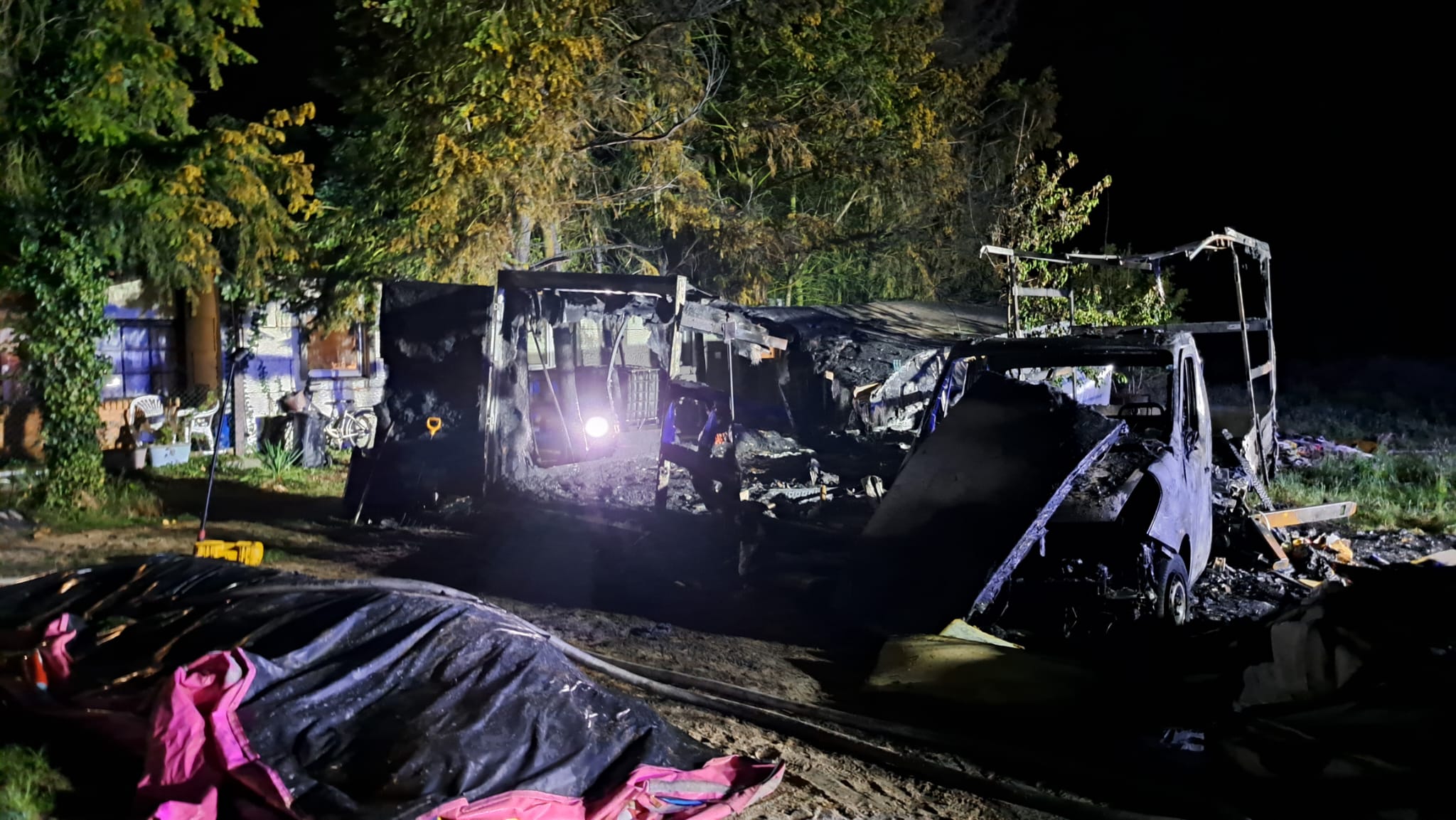 i samochód dostawczy. W kontenerze składowane były dmuchane zamki wraz z osprzętem.