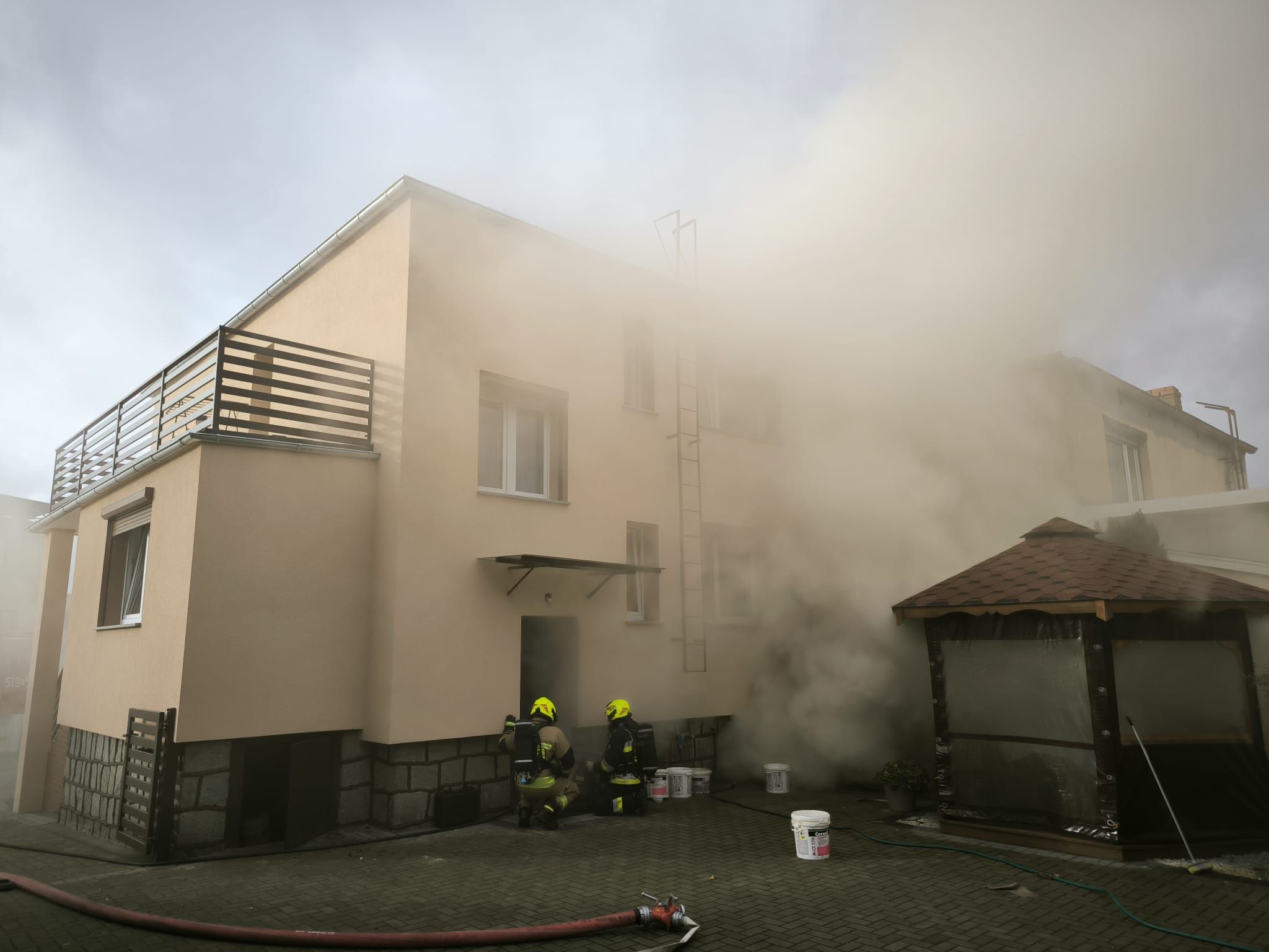 Działania strażaków polegały na zabezpieczeniu miejsca zdarzenia, podaniu 2 prądów wody w natarciu na palące się materiały, monitorowaniu rozprzestrzeniania się pożaru z wykorzystaniem kamery termowizyjnej, wycięciu krat okiennych, które zabezpieczały okna piwniczne. Następnie oddymiono pomieszczenia oraz kilkukrotnie sprawdzono kamerą termowizyjną i detektorem wielogazowym - urządzenia nie wykazały zagrożeń. Z uwagi na duże zadymienie całość działań ratowniczych prowadzona była w aparatach ochrony układu oddechowego. Z uwagi na liczne podmiany ratowników na miejsce pożaru zadysponowano zastęp OSP Przyprostynia oraz kolejny zastęp OSP Zbąszyń z mobilną sprężarką do napełniania butli powietrznych.