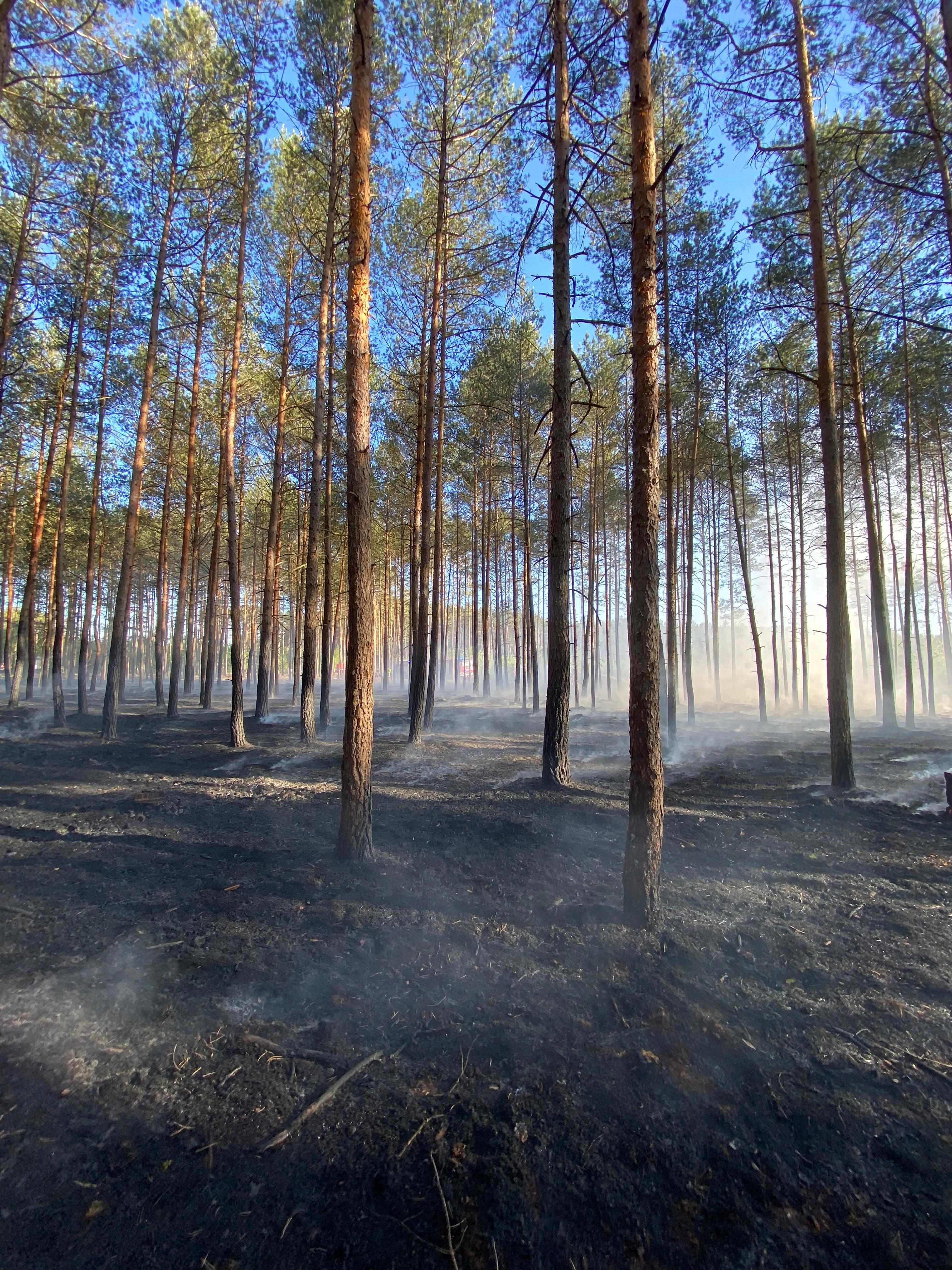 Po przybyciu zastępów na miejsce zdarzenia zastano pożar ściółki w lesie sosnowym na powierzchni ok. 70x70 m.