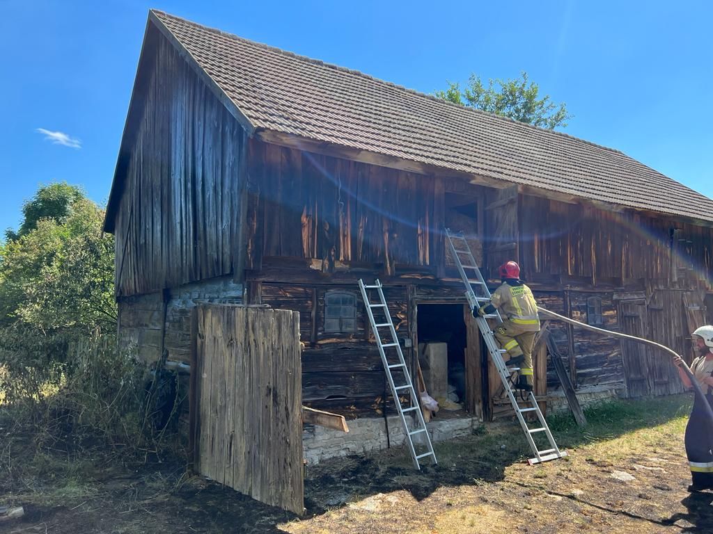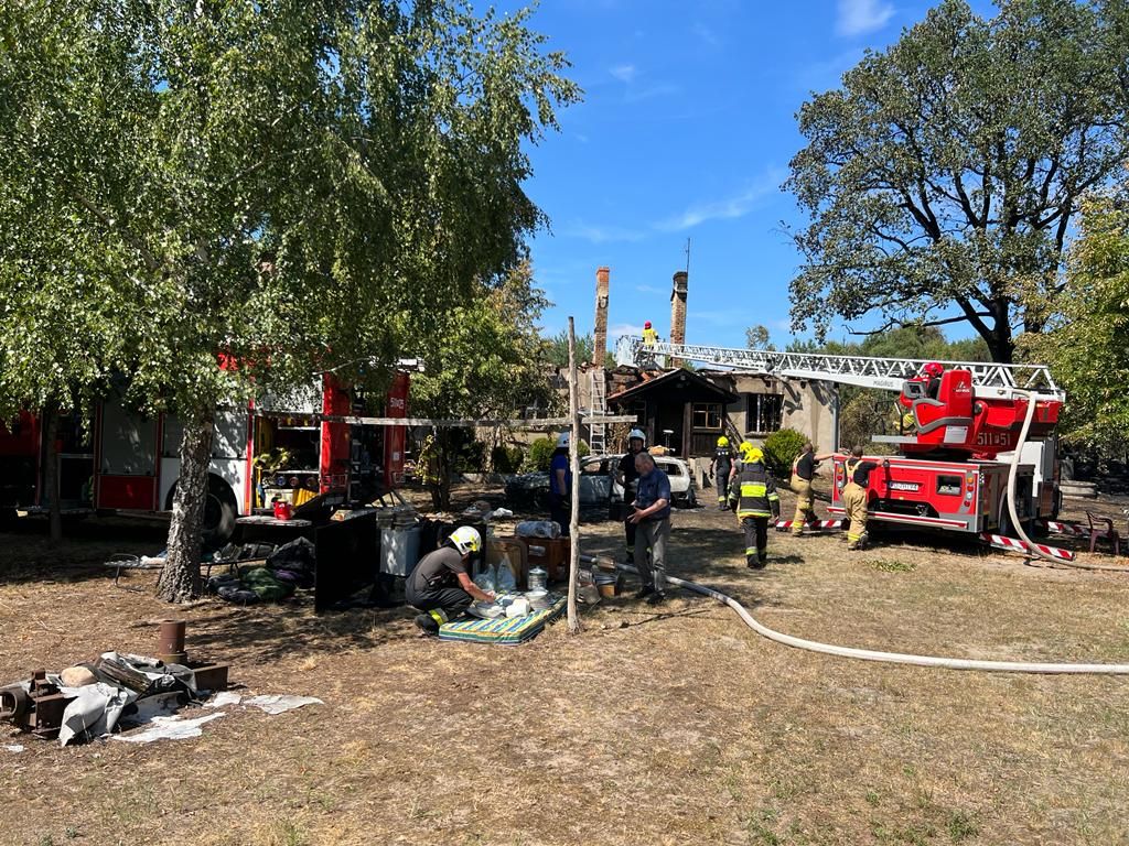 Dalsze działania polegały na ewakuacji z budynku mieszkalnego rzeczy osobistych oraz użytku domowego, z pomieszczenia kuchni wyniesiono 3 butle 11kg z gazem propan-butan, które nie były narażone na oddziaływanie wysokiej temperatury. W wyniku podjętych działań ogień nie przedostał się na stodołę, natomiast szopa, w której zgromadzone było drewno opałowe i węgiel uległa całkowitemu spaleniu. Dokonano częściowej rozbiórki pokrycia dachu budynku mieszkalnego, więźby oraz stropu. Punkt czerpania wody stworzono na stawie oddalonym o około 1600 metrów od miejsca pożaru. Przybyli na miejsce przedstawiciele Nadzoru Budowlanego po przeprowadzonych oględzinach wydali zakaz dalszego użytkowania budynku mieszkalnego. Przybyły na miejsce zespół dochodzeniowo śledczy z Komendy Powiatowej Policji w Nowym Tomyślu oraz biegły sądowy po przeprowadzonych oględzinach wykluczyli udział osób trzecich. Po przeprowadzonych pracach rozbiórkowych cały budynek i strop sprawdzono kamerą termowizyjną, która nie wykazała zagrożenia. Po przekazaniu miejsca działań na terenie leśnym pracownicy Nadleśnictwa wyznaczyli osoby do dozorowania pogorzeliska. Na miejsce przybył traktor z pługiem, który oborał pogorzelisko na nieużytku i w lesie. Taśmą ostrzegawczą wyznaczono strefę wokół budynku oraz wydano zalecenie dozorowania całego pogorzeliska i nie wchodzenia do wnętrza budynku.