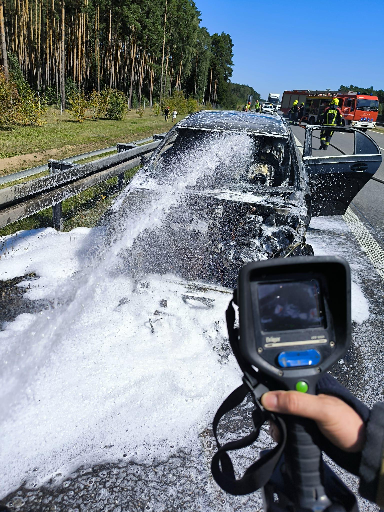 Pożar osobówki na A2 - 92 km