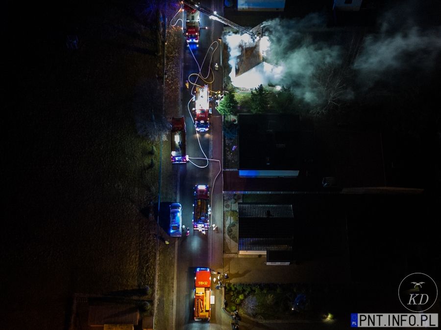 Po przybyciu na miejsce zdarzenia jednostek straży pożarnej zastano pożar na parterze niezamieszkałego budynku jednorodzinnego. Płomienie wychodziły na zewnątrz budynku przez otwory okienne.