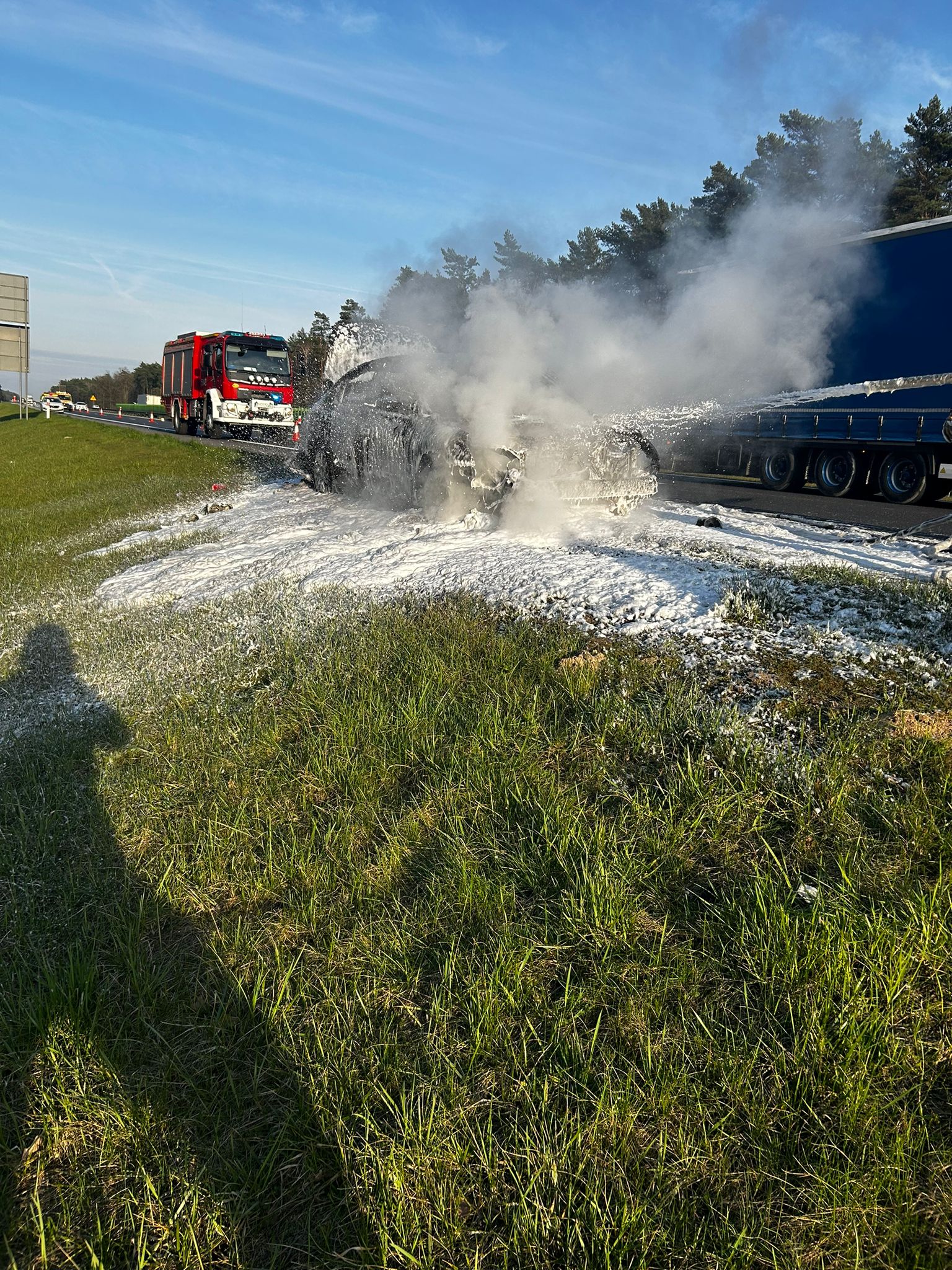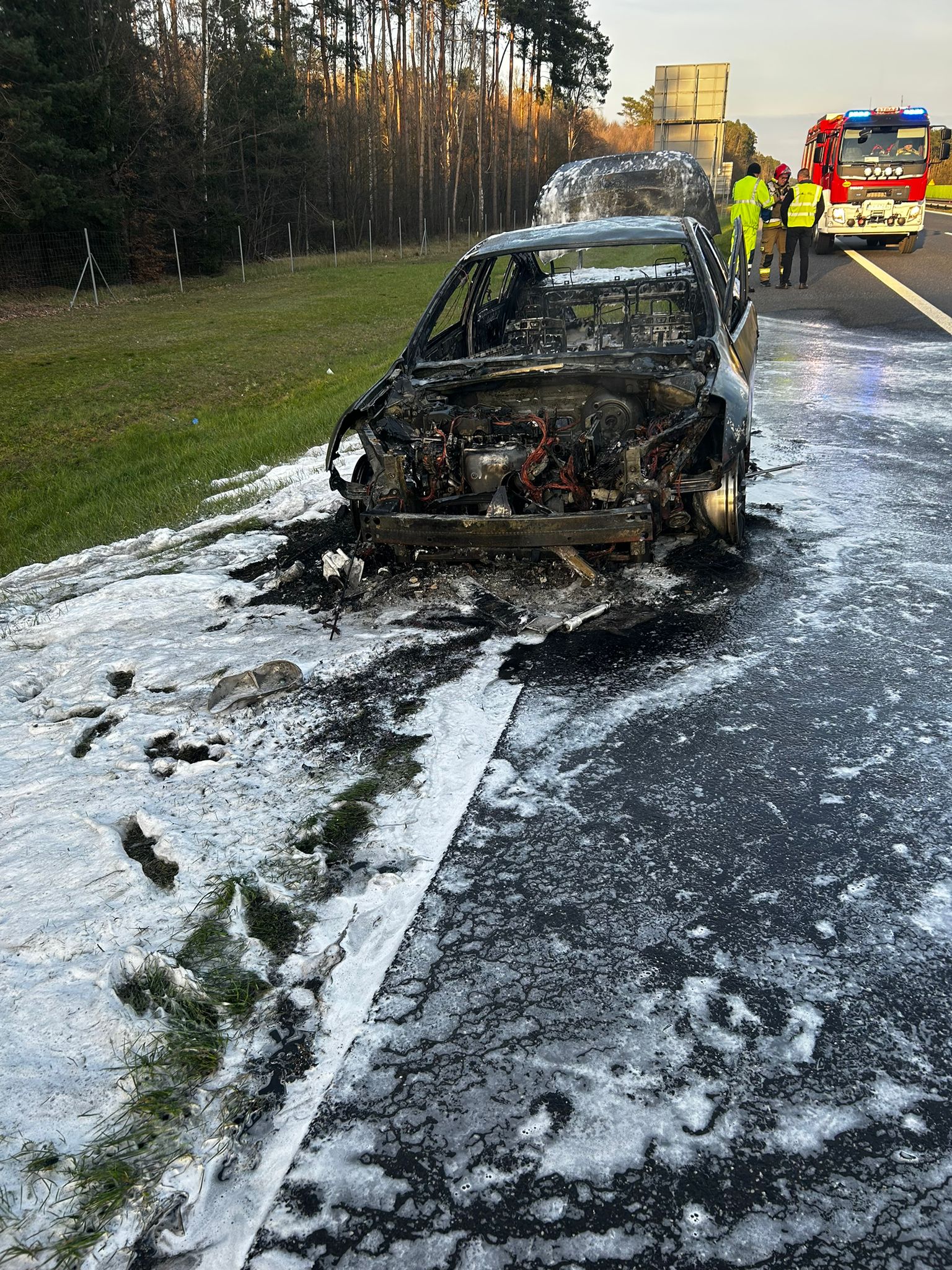 Pożar samochodu osobowego na autostradzie A2
