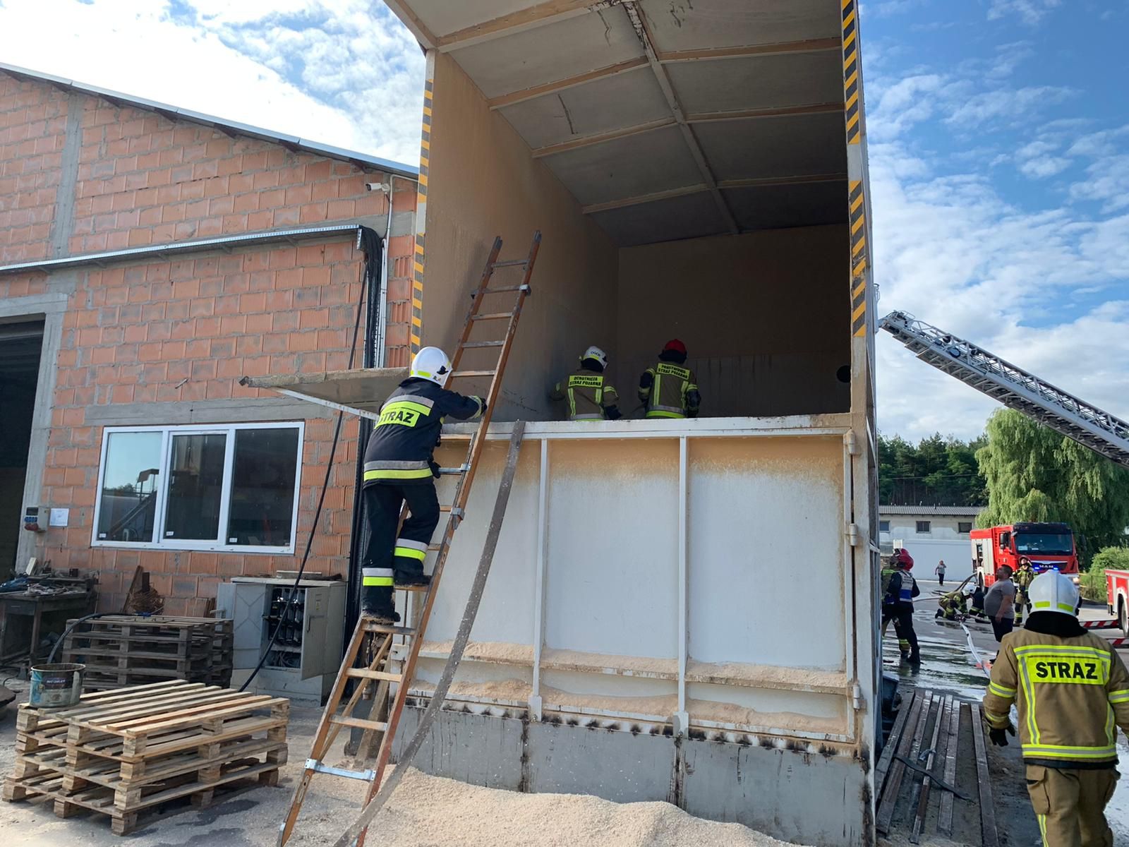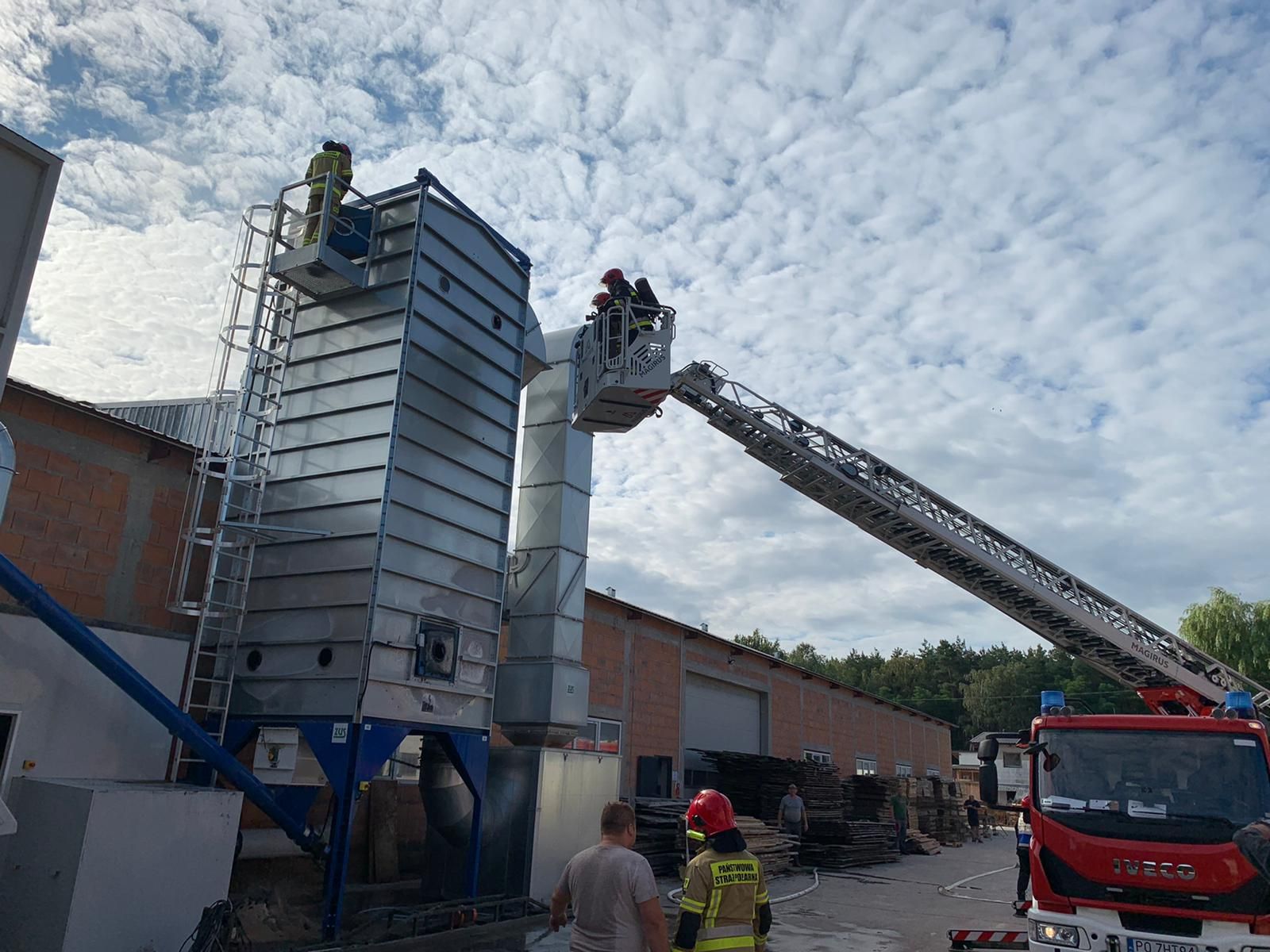 W dniu 3 sierpnia 2021 roku o godz. 8:12 do Stanowiska Kierowania Komendanta Powiatowego PSP w Nowym Tomyślu wpłynęło zgłoszenie o pożarze w podnowotomyskiej firmie zajmującej się produkcją pelletu. Do działań zadysponowano samochód gaśniczy GCBA-Rt 5/32, drabinę mechaniczną SD-30 i samochód rozpoznawczo ratowniczy wraz z Zastępcą Komendanta Powiatowego i zastępcą dowódcy jednostki z JRG Nowy Tomyśl oraz zastęp OSP Boruja Kościelna i OSP Bukowiec. Po przybyciu pierwszych zastępów straży na miejsce zdarzenia zastano palący się filtr do trocin na terenie firmy. Filtr metalowy, stojący przy hali produkcyjnej. Pracownicy podjęli próbę ugaszenia pożaru przez podanie jednego prądu wody z hydrantu do wnętrza filtra. Na hali przylegającej do filtra panowało małe zadymienie. Po otrzymaniu informacji od dowódcy akcji gaśniczej o wystarczającej ilości sił i środków, dyżurny stanowiska kierowania zawrócił zastęp OSP Bukowiec do bazy. Działania straży pożarnej polegały na zabezpieczeniu miejsca zdarzenia, oddymieniu i przewietrzeniu hali, rozstawieniu drabiny mechanicznej oraz podaniu dwóch prądów wody do wnętrza palącego się filtra. Na zakończenie działań sprawdzono filtr oraz instalację odpylającą przy pomocy kamery termowizyjnej, która nie wykazała zagrożenia.