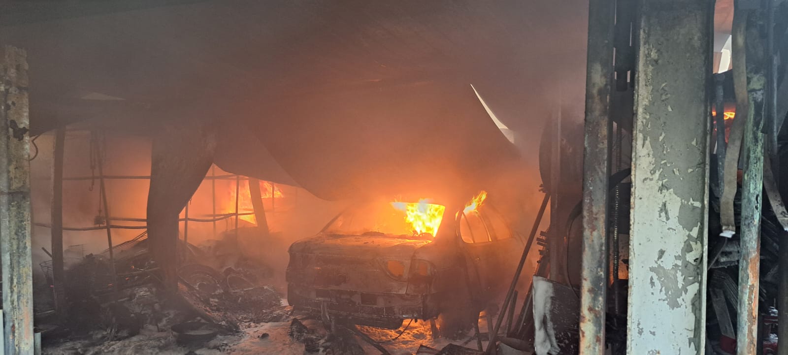 POŻAR WIATY MAGAZYNOWO - GARAŻOWEJ