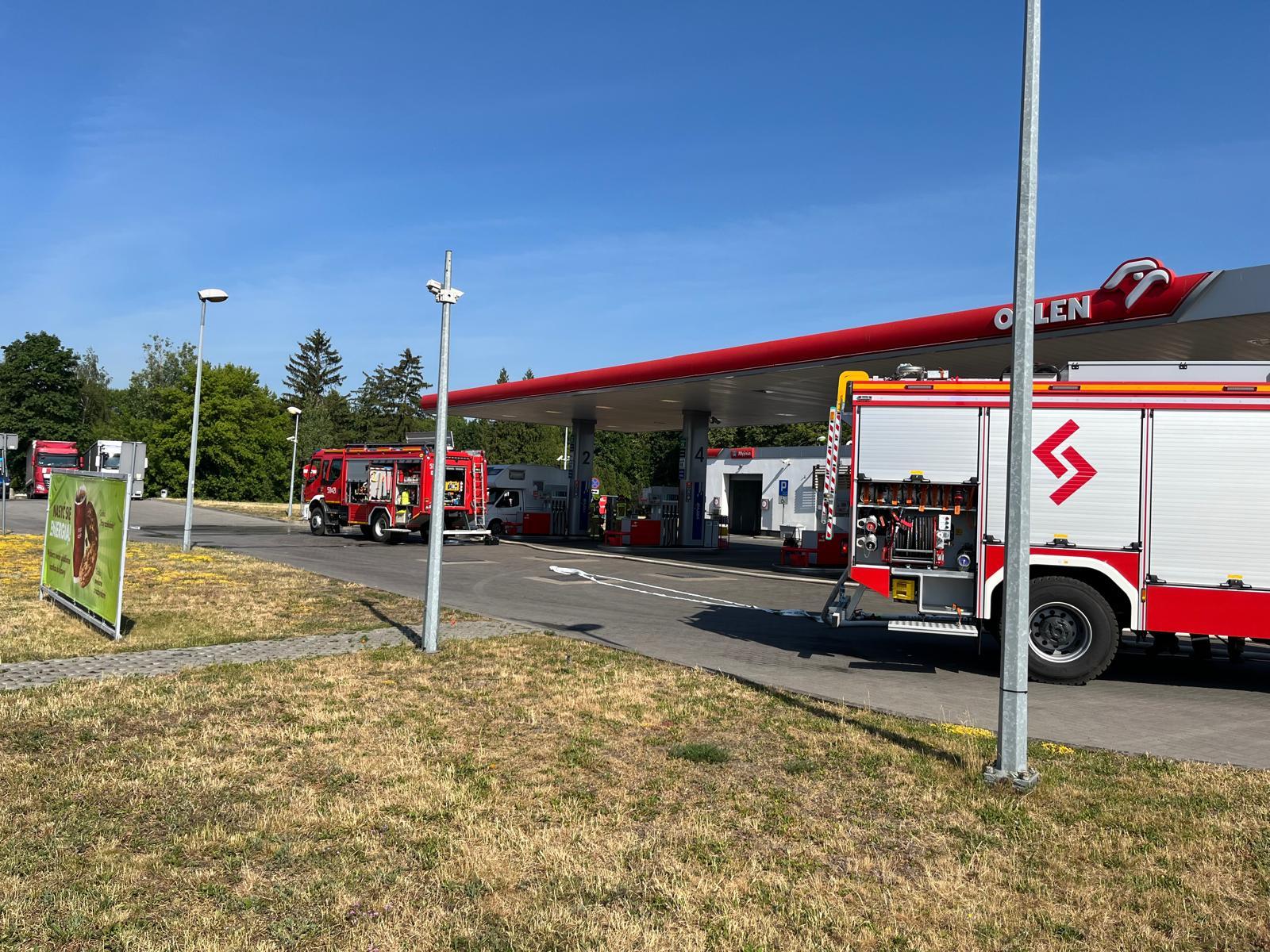 Rozszczelniony zbiornik LPG w samochodzie typu camper na stacji paliw ORLEN