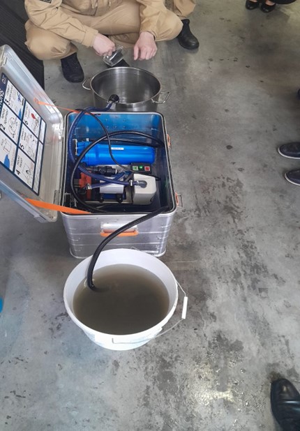 W dniu 05.08.2025 roku w siedzibie Komendy Powiatowej Państwowej Straży Pożarnej w Nowym Tomyślu odbyło się spotkanie funkcjonariuszy z przedstawicielami jednostek samorządu terytorialnego szczebla gminnego i powiatowego, Powiatowej Stacji Sanitarno-Epidemiologicznej oraz przedstawicielami zakładów wodociągowych z terenu powiatu nowotomyskiego. Przedmiotem spotkania były zadania związane z Ochroną Ludności i Obroną Cywilną oraz zagadnienia związane z możliwością wykorzystania dostępnych zasobów sprzętowych wchodzących w skład Krajowego Systemu Ratowniczo – Gaśniczego do zaopatrzenia ludności cywilnej w wodę w sytuacjach zdarzeń losowych, katastrof lub wojny. Podczas spotkania poruszone zostały również podstawowe aspekty związane z wymaganiami jakie musi spełniać woda pitna oraz zaprezentowano mobilne urządzenie służące do uzdatniania wody.