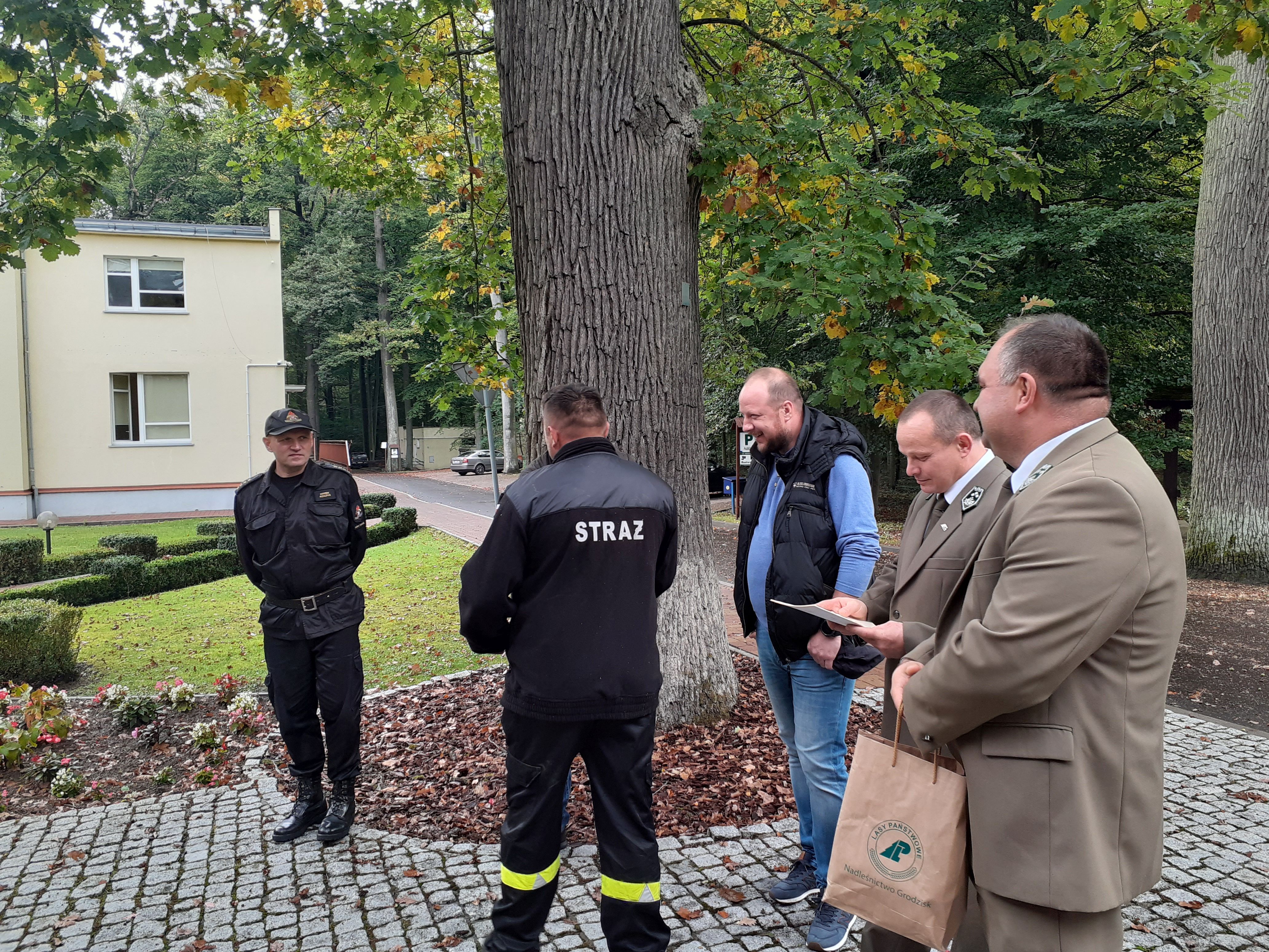 W uroczystym zakończeniu kursu uczestniczyli: Dariusz Szulc - Nadleśniczy Nadleśnictwa Grodzisk, Wojciech Śliczner - zastępca Nadleśniczego Nadleśnictwa Grodzisk oraz st. kpt. Marek Kołdyk - Komendant Powiatowy Państwowej Straży Pożarnej w Nowym Tomyślu.