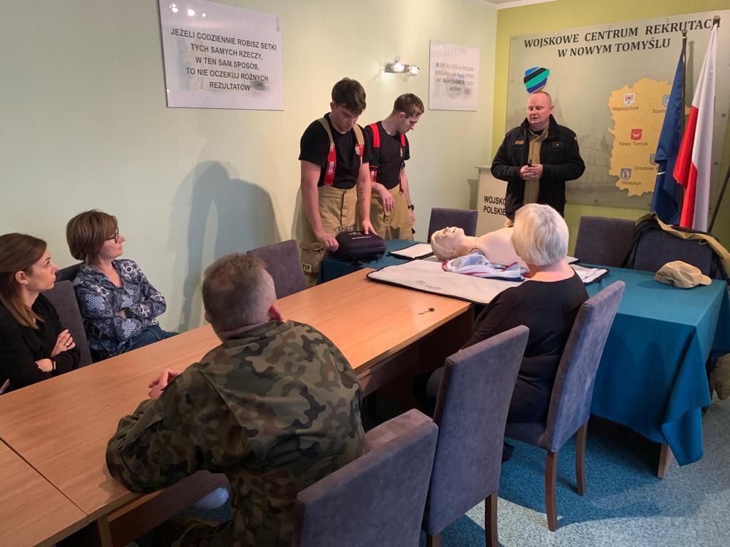 Po przeprowadzonych ćwiczeniach strażacy z nowotomyskiej JRG przeprowadzili instruktarz z zakresu obsługi podręcznego sprzętu gaśniczego oraz kwalifikowanej pierwszej pomocy dla żołnierzy oraz pracowników Wojskowego Centrum Rekrutacji.